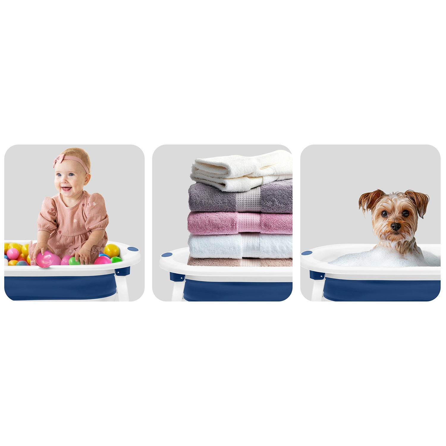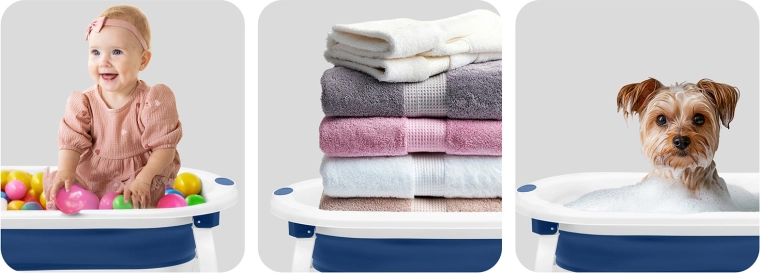 - Utilizare universală – pentru bebeluși și copii mai mari; după ce nu mai este necesară, poate fi folosită ca piscină cu bile, pentru spălat sau pentru animalele de companie.