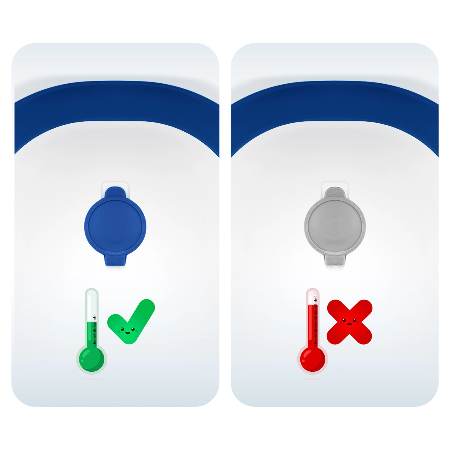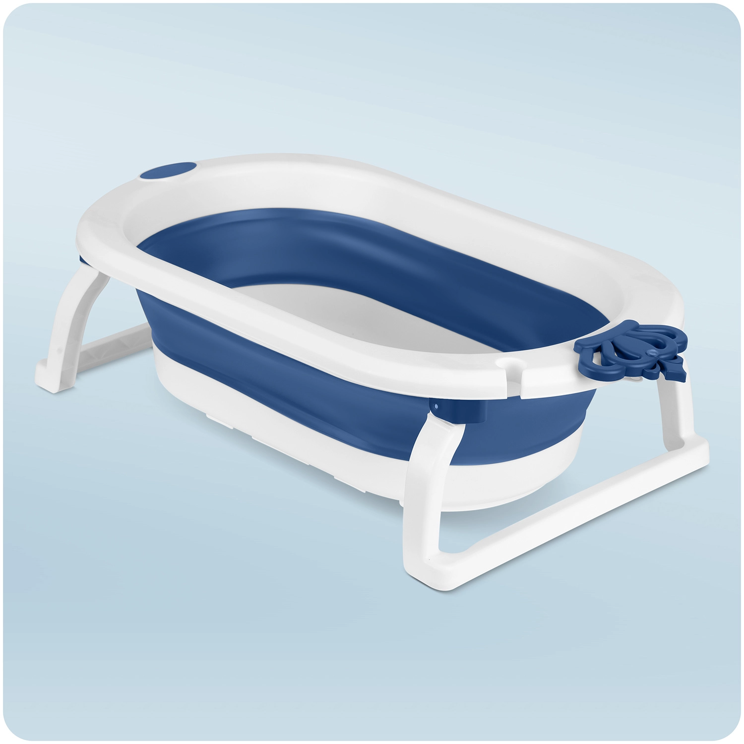 Picioarele rabatabile cu capete antiderapante mențin cădița ferm pe loc. Dopul își schimbă culoarea când temperatura depășește 38 °C, astfel încât aveți mereu control asupra temperaturii apei.
