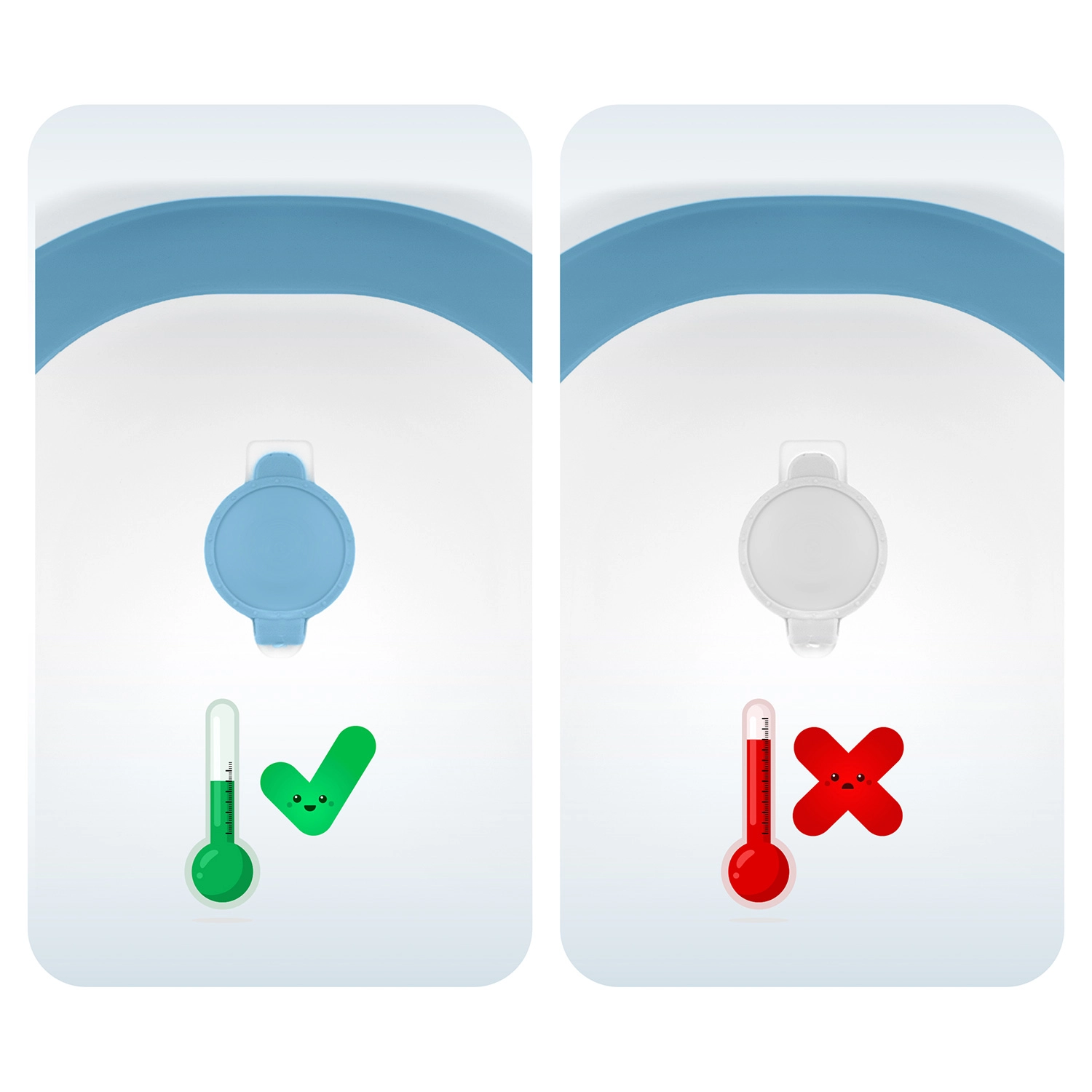 Vezi temperatura apei dintr-o privire. Termometrul integrat cu sondă precisă măsoară în timp real, în timp ce dopul își schimbă culoarea peste 38 °C – pentru o baie liniștită și sigură.