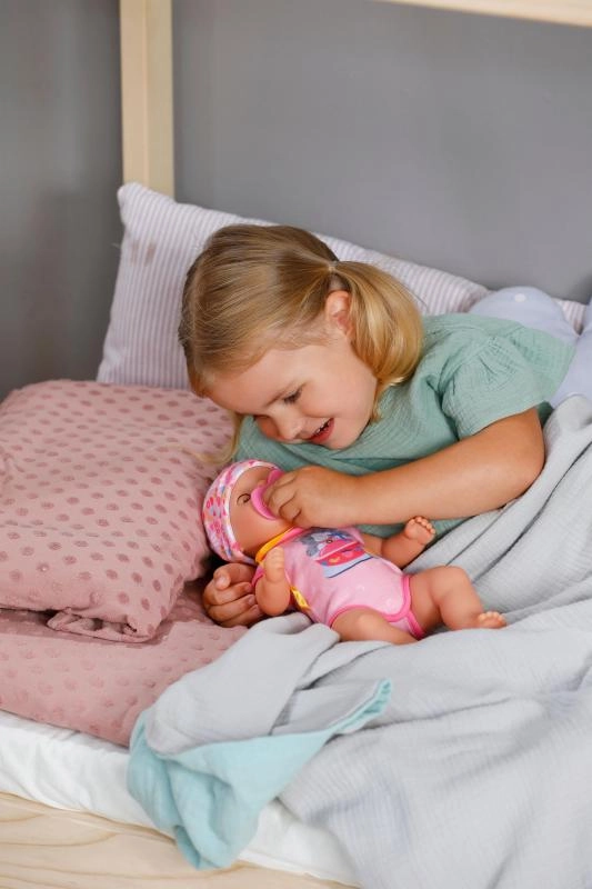 Introduceți copiii în îngrijirea unui bebeluș într-un mod ludic și sigur. BABY born Lena are o construcție moale, plăcută pentru copii, și funcții simple care susțin dezvoltarea motricității fine și a imaginației. Scutecul, la contactul cu apa, afișează o inimioară galbenă, oferind jocului o notă realistă.