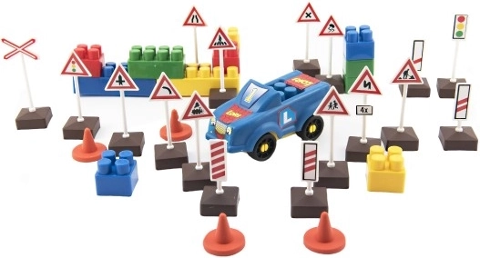 - 16 buc semne de circulație, 2 conuri, 1 mașină