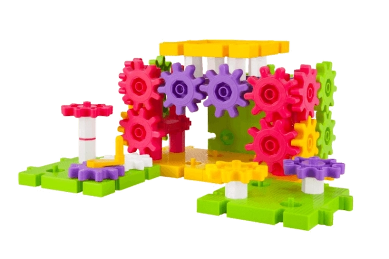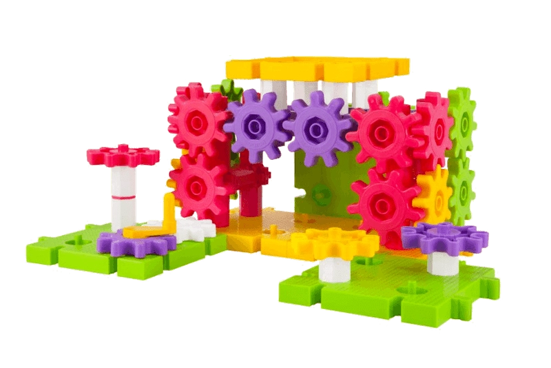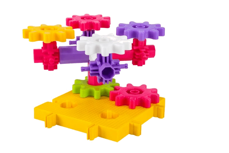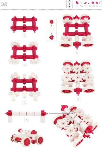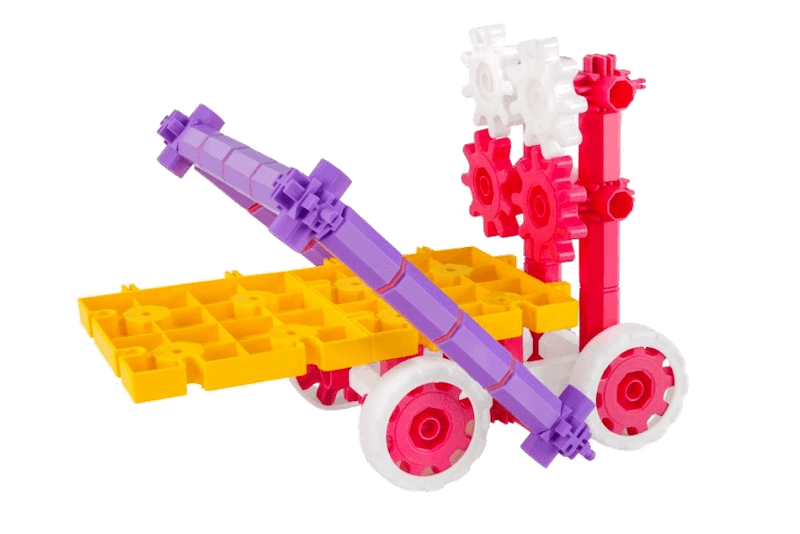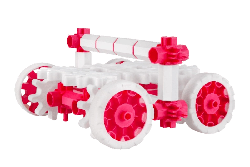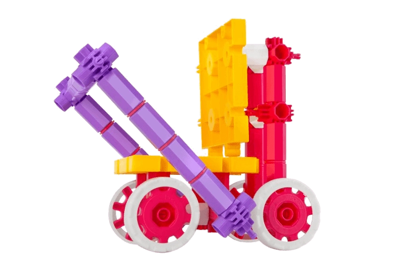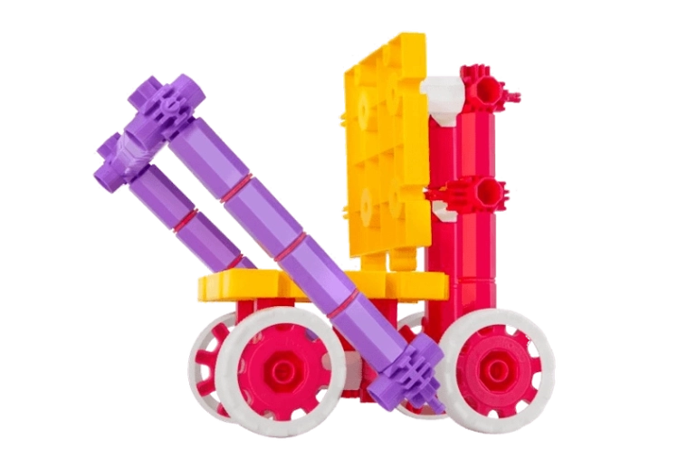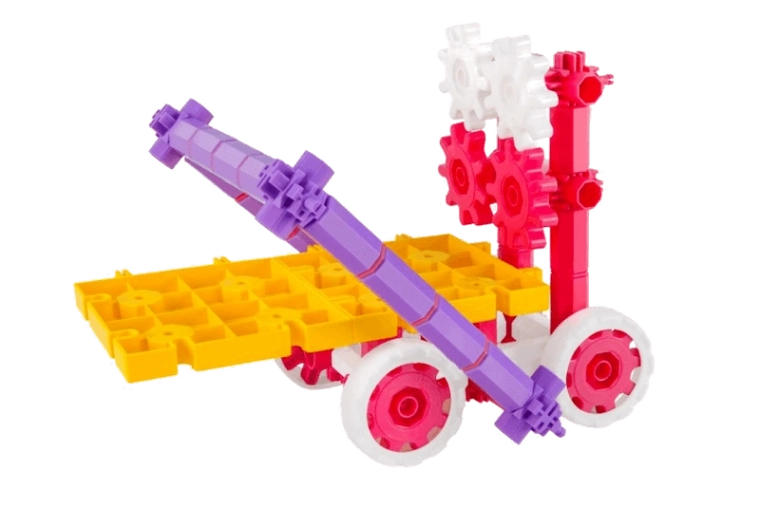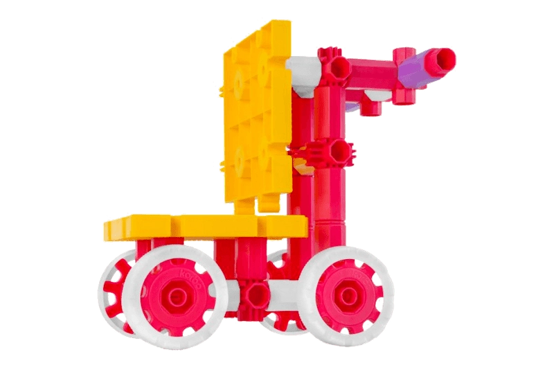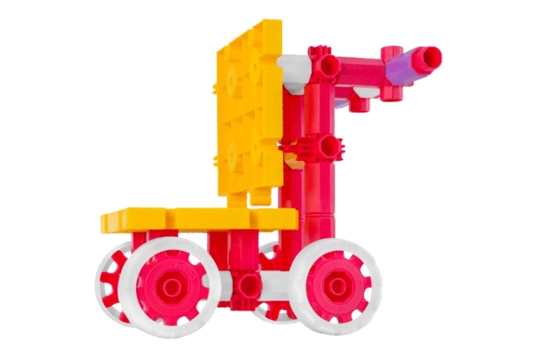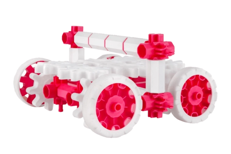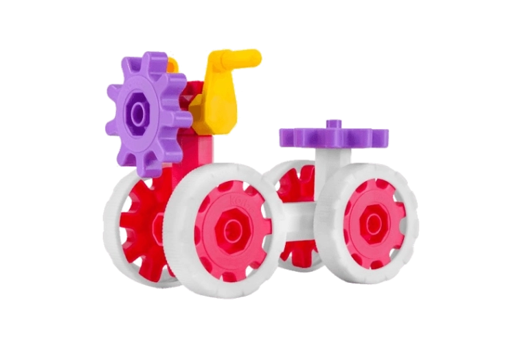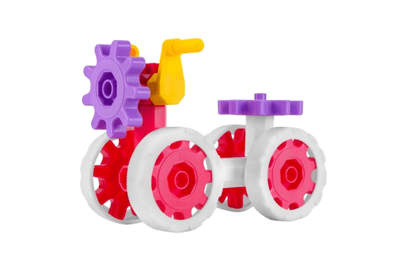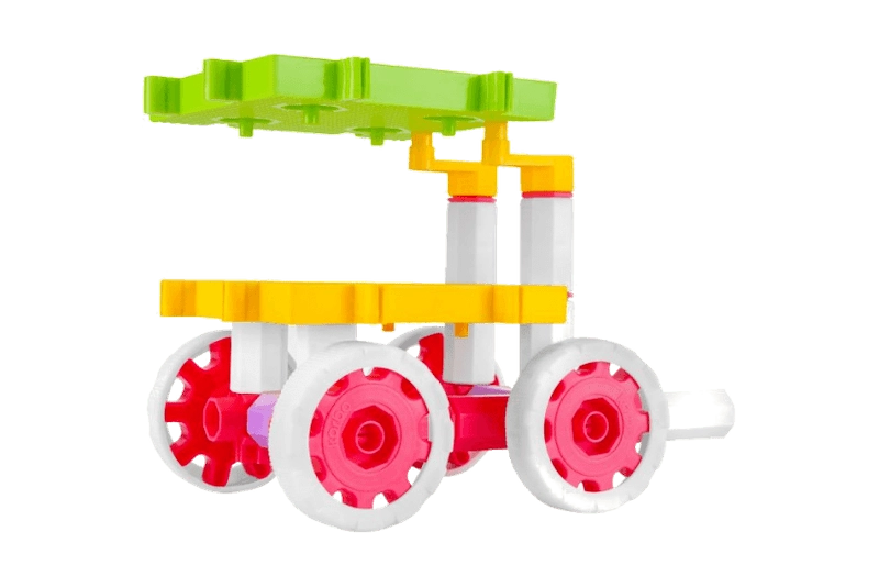 Anvelopele și piesele de conectare le permit copiilor să construiască vehicule care chiar se deplasează. Susține înțelegerea mecanicii și dezvoltarea motricității fine.