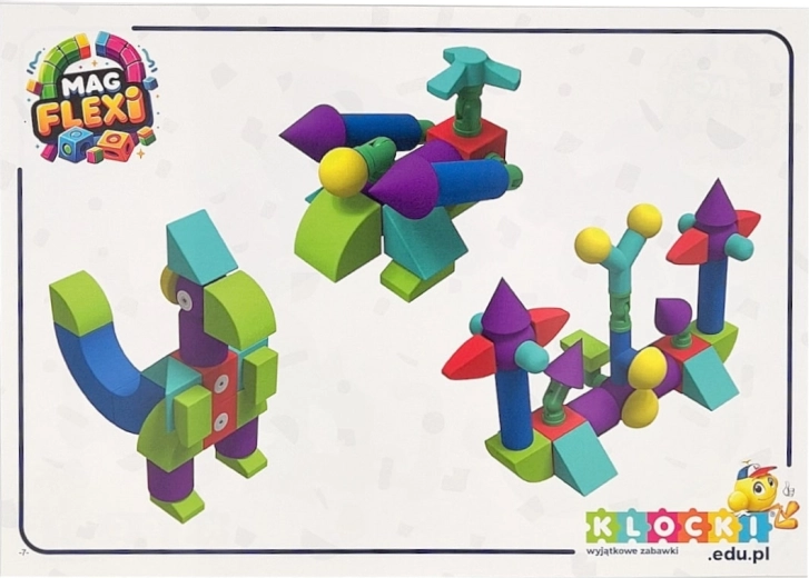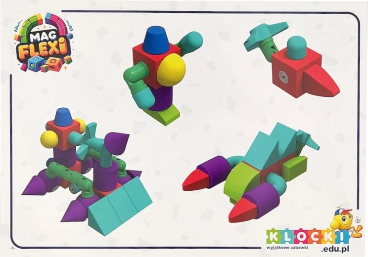 Setul de cuburi din spumă magnetică MAGFLEXI oferă copiilor posibilități nelimitate de creație. Piesele colorate și ușoare, cu margini moi, sunt plăcute la atingere și susțin jocul în siguranță încă de la 3 ani. Datorită magneților și balamalelor flexibile din plastic, pot fi construite cu ușurință vehicule, personaje și structuri 3D.