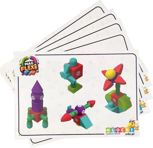 În pachet găsești forme variate – roți, triunghiuri, pătrate, distanțiere și îmbinări articulate – care dezvoltă gândirea logică, coordonarea mână–ochi și creativitatea. Cardurile cu idei incluse îi ajută pe începători și inspiră proiecte proprii.