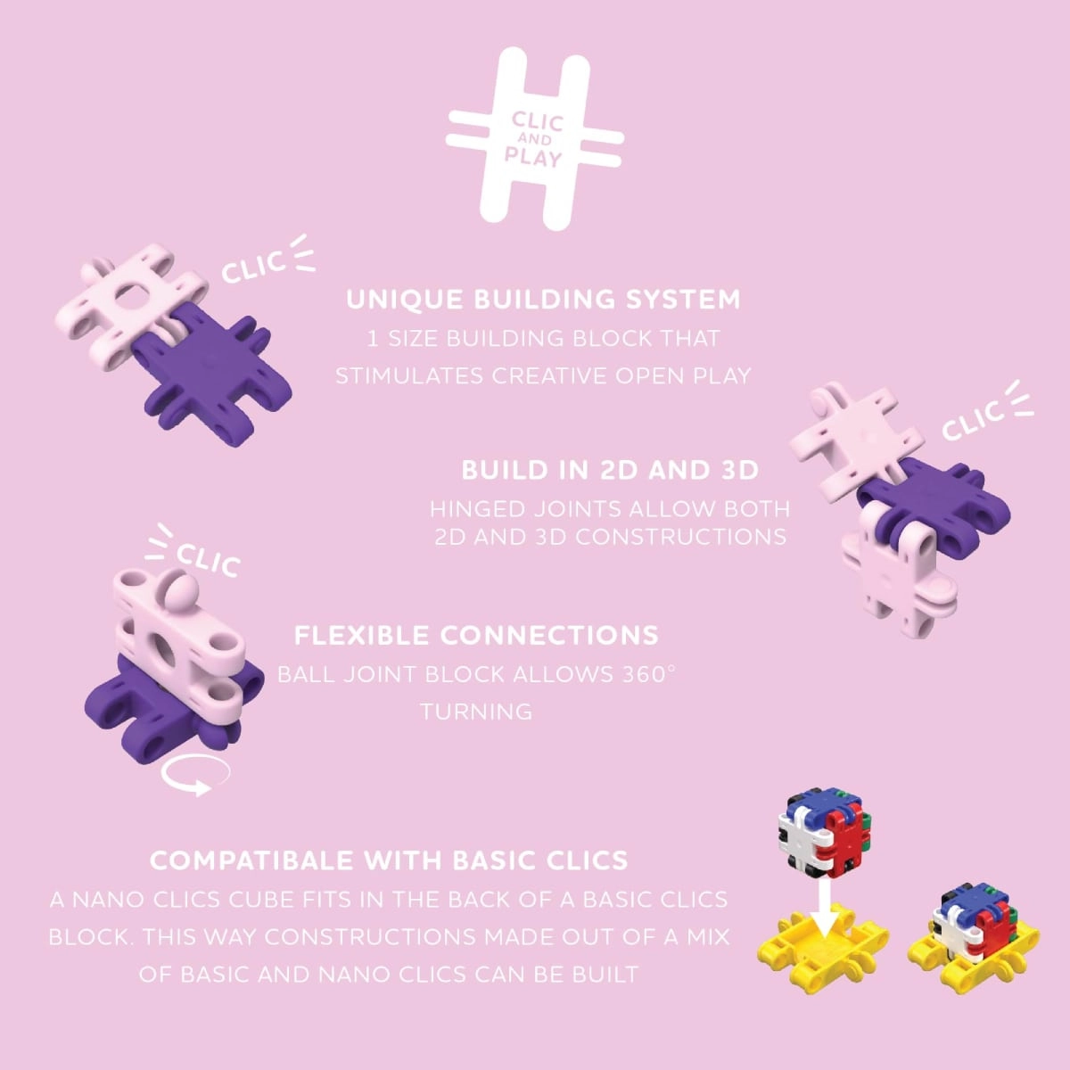 Extindeți imaginația copiilor cu proiecte epice. Setul Nano Clics cu 250 de elemente mici de construcție este conceput pentru modele detaliate și structuri bine gândite. Copiii pot construi castele grandioase, armate de creaturi și întregi imperii – dezvoltând totodată motricitatea fină, răbdarea și abilitatea de a-și spune propriile povești.