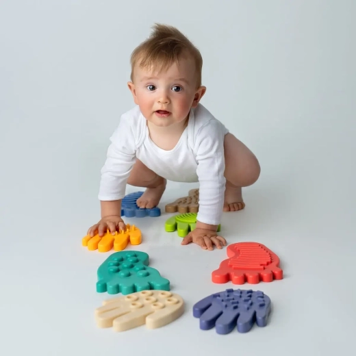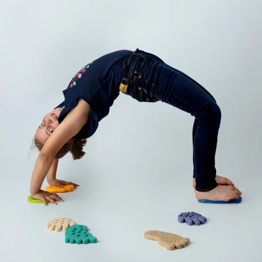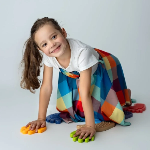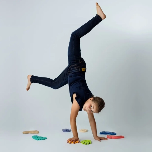 SENSORKY aduce copiilor o lume bogată de senzații tactile. Mersul și cățăratul pe elemente cu suprafețe diferite întăresc mușchii mici ai picioarelor și mâinilor, îmbunătățesc percepția propriului corp și contribuie la o mai bună integrare a stimulilor senzoriali. Produsul premiat Kids' Time Star 2025 îmbină motivația prin joc cu stimularea senzorială bine gândită și este un excelent ajutor pentru exercițiile zilnice.