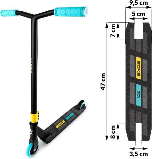 Banda grip pentru trotinetă Soke GO! asigură o poziție stabilă și aterizări mai sigure la trick-uri. Datorită suprafeței abrazive de calitate, piciorul rămâne ferm pe deck chiar și pe timp umed și la viteză mai mare.
