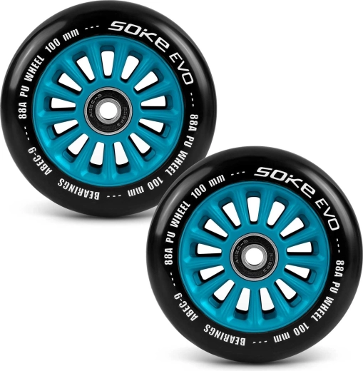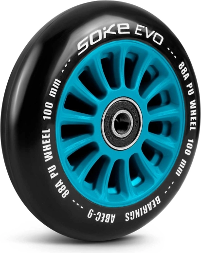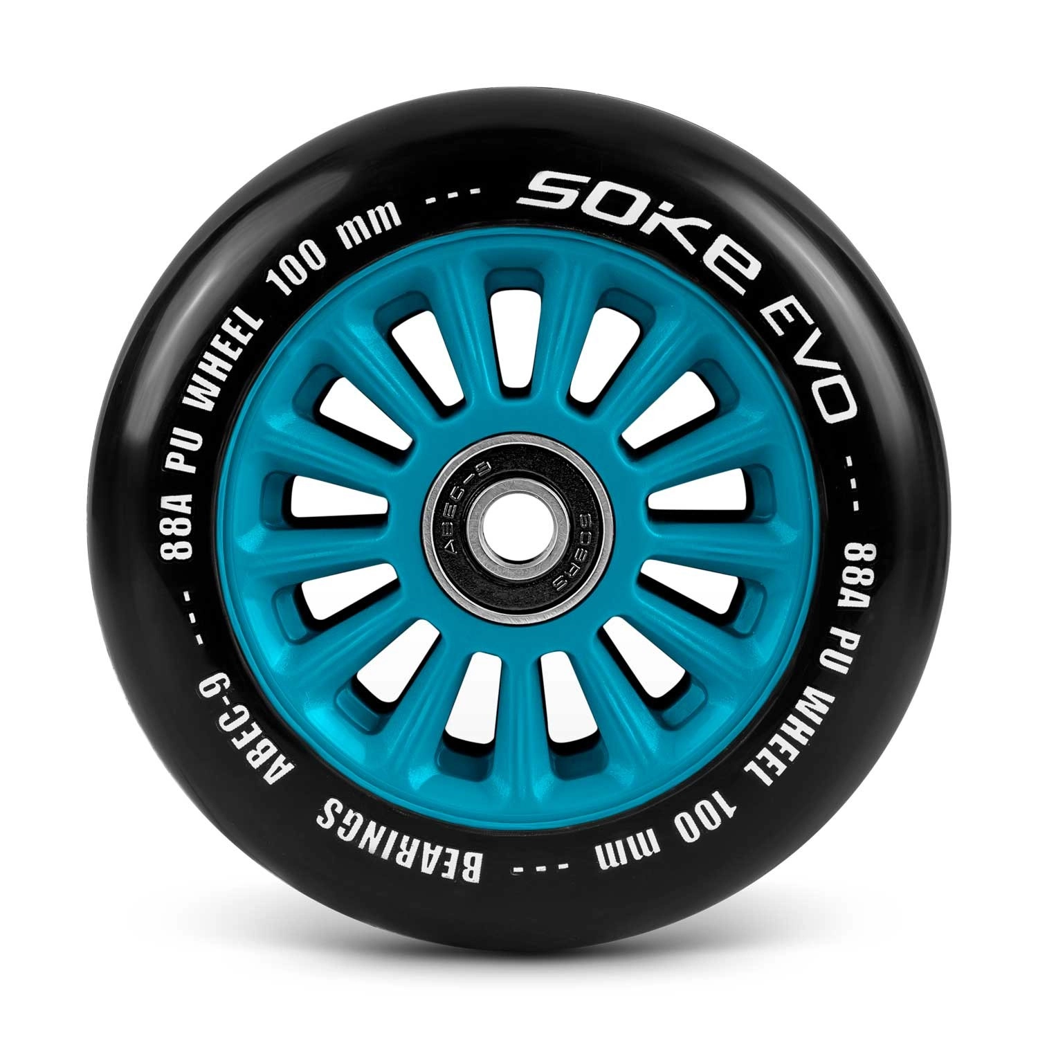 Roțile SOKE sunt fabricate dintr-un amestec de poliuretan durabil, cu duritate 88A, pentru aderență și control excelente. Rulmenții integrați ABEC-9 contribuie la viteză ridicată și rulare lină, apreciate atât de începători, cât și de riderii avansați.