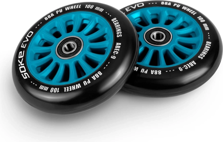 Cu diametrul de 100 mm, sunt ideale pentru majoritatea trotinetelor freestyle și urbane. Butucul rezistent cu nervuri și prelucrarea precisă asigură stabilitate chiar și la sarcini mai ridicate.