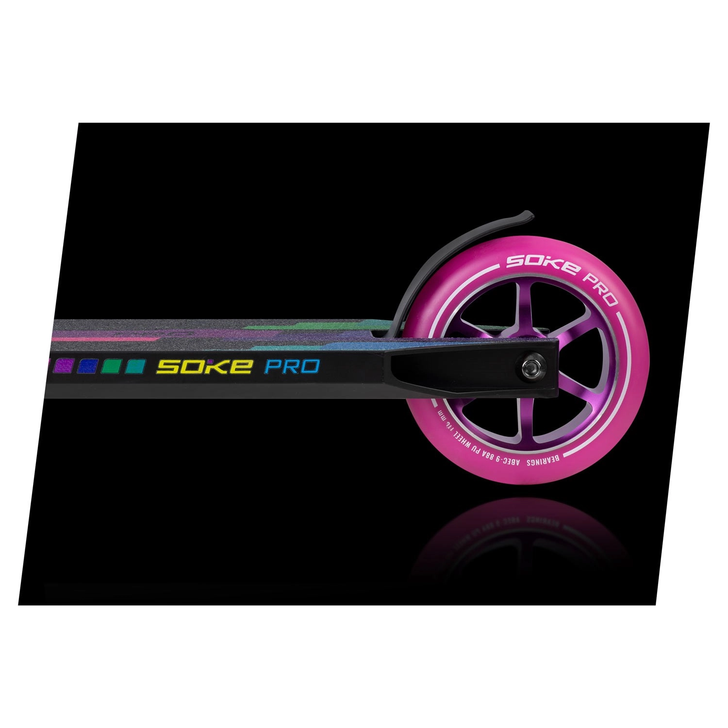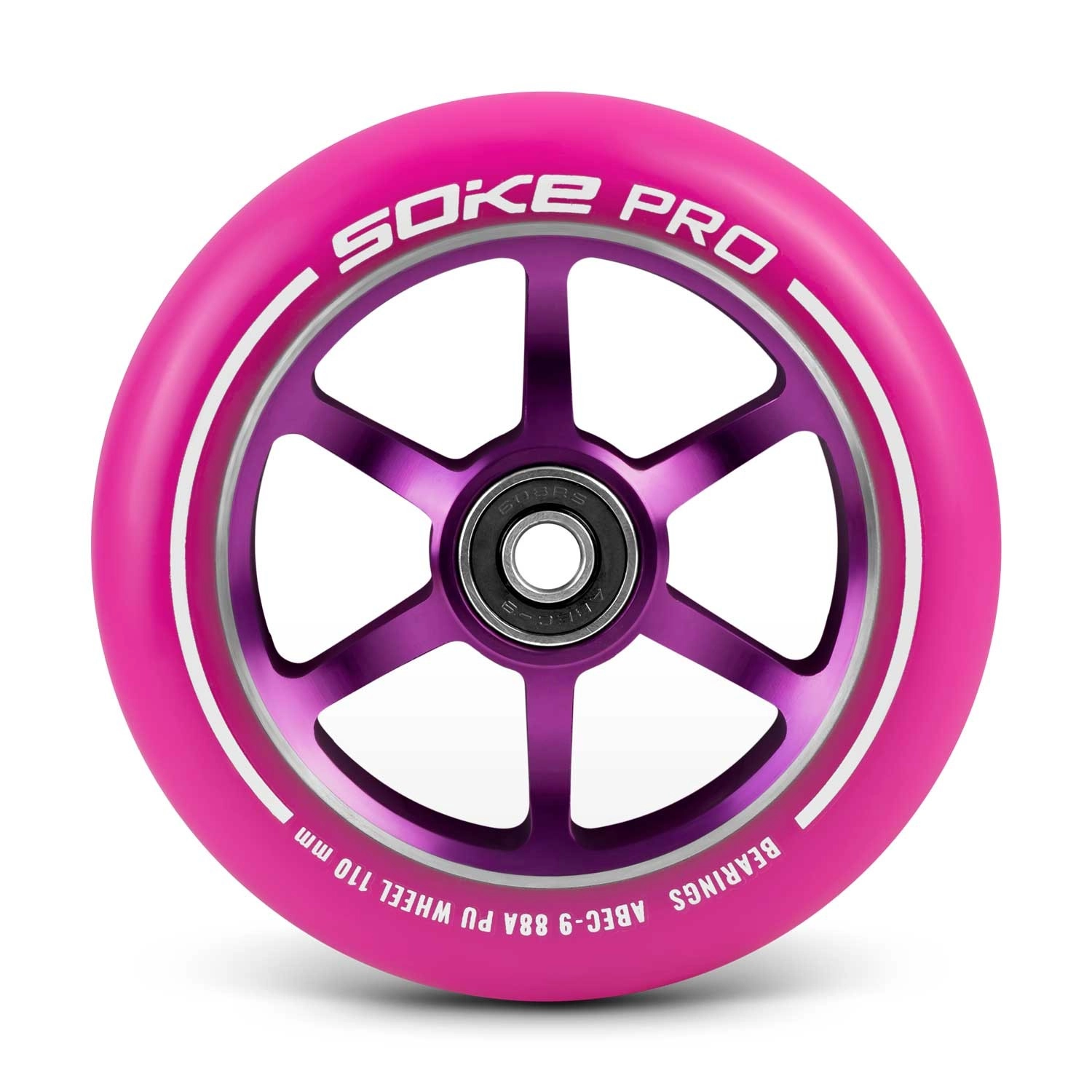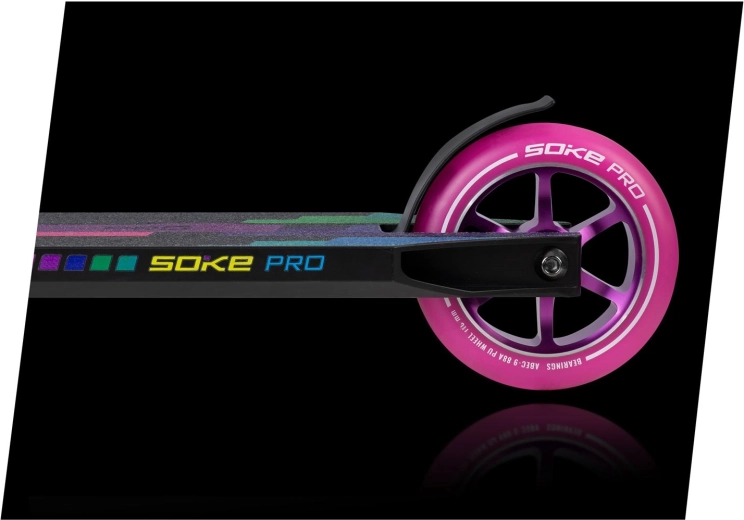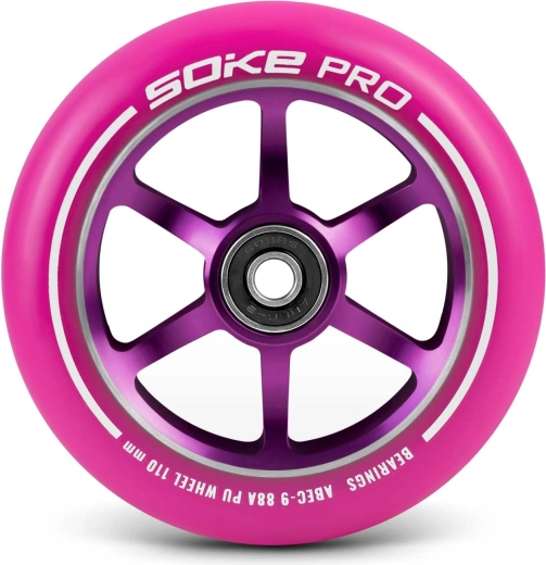 Roțile SOKE de 110 mm sunt concepute pentru o rulare lină, rapidă și stabilă. Datorită compusului PU 88A, aderă foarte bine pe suprafețe dure, precum asfaltul, menținând totodată viteza potrivită pentru street și park. Miezul din aluminiu cu construcție în cinci spițe crește durabilitatea și reduce greutatea – o alegere ideală atât pentru antrenarea trick-urilor, cât și pentru naveta zilnică.