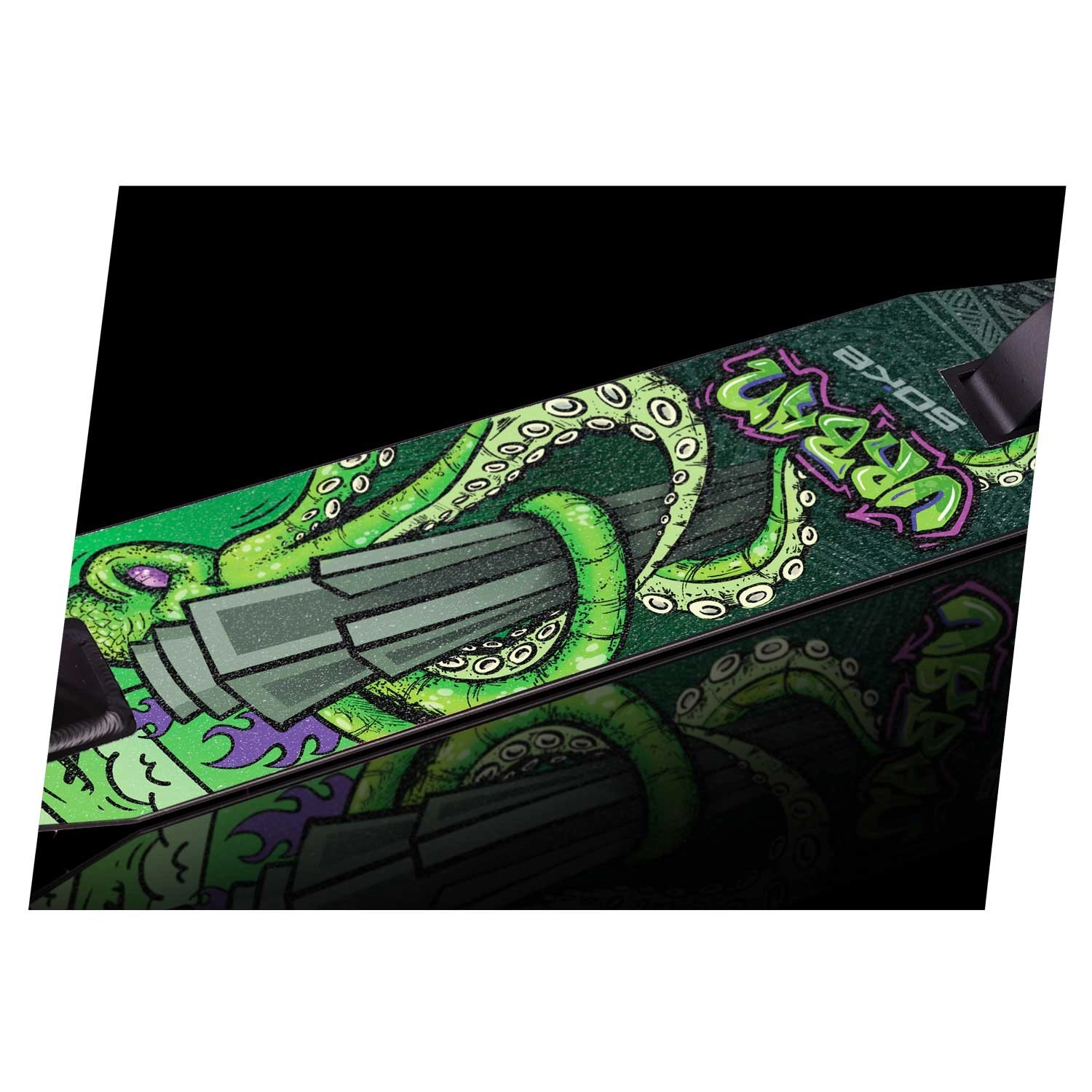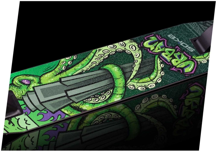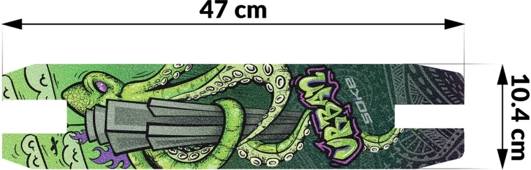 Grip tape-ul SOKE Evo – Octopus este conceput pentru riderii care vor siguranță maximă la mers și la executarea trick-urilor. Datorită suprafeței abrazive de calitate oferă un grip fiabil și stabilitate, în timp ce dimensiunile universale facilitează aplicarea precisă pe majoritatea trotinetelor freestyle și de oraș. Designul Octopus îți evidențiază stilul și oferă trotinetei un aspect unic.
