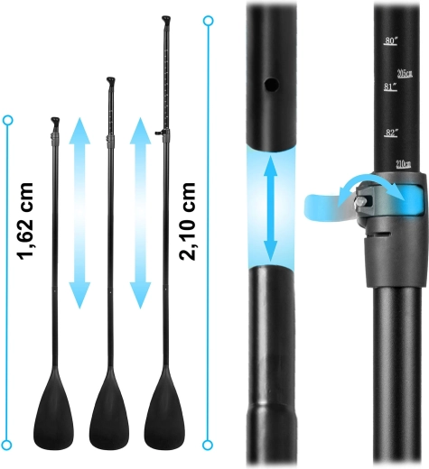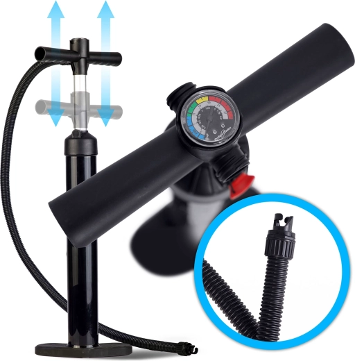 - Punere rapidă în funcțiune – ventil universal, pompare cu dublă acțiune și reglare ușoară a lungimii vâslei cu închidere cu levier.