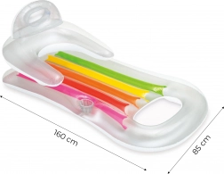 Salteaua gonflabilă INTEX combină stilul, confortul și durabilitatea. Designul transparent cu segmente colorate înveselește orice piscină, iar spătarul moale, ergonomic asigură relaxare fără compromisuri. Suportul pentru băuturi păstrează răcoritoarele mereu la îndemână.