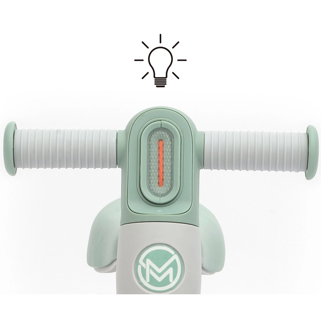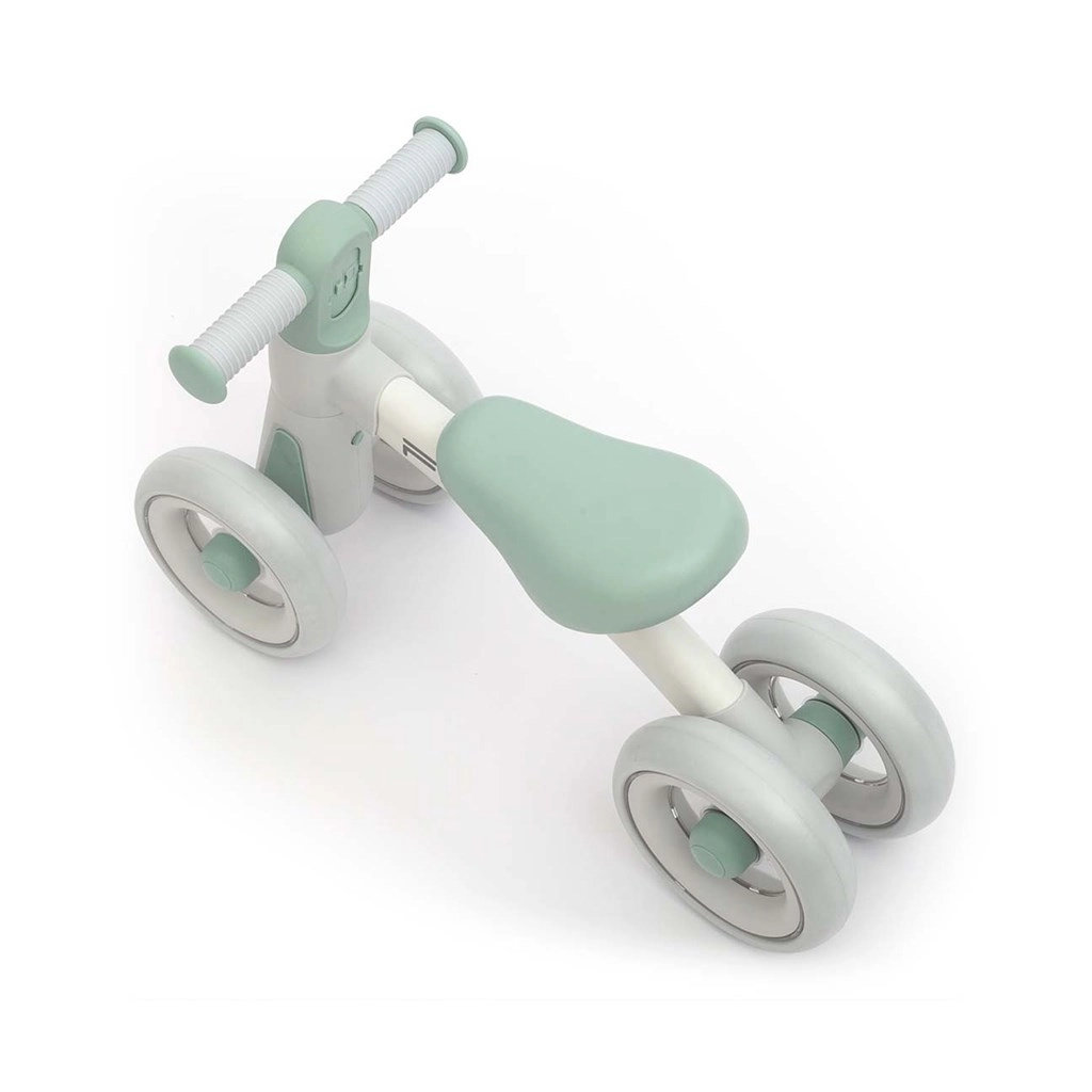 Ergonomia atent gândită pune accent pe confort și siguranță: mânerele moi, antiderapante, se potrivesc mânuțelor mici, șa ergonomică din material plăcut susține o poziție corectă, iar roțile late din EVA (17 cm) asigură o deplasare silențioasă și lină, fără risc de pană. Construcția ușoară, dar solidă, se transportă ușor și rezistă la joaca zilnică, atât în interior, cât și afară.