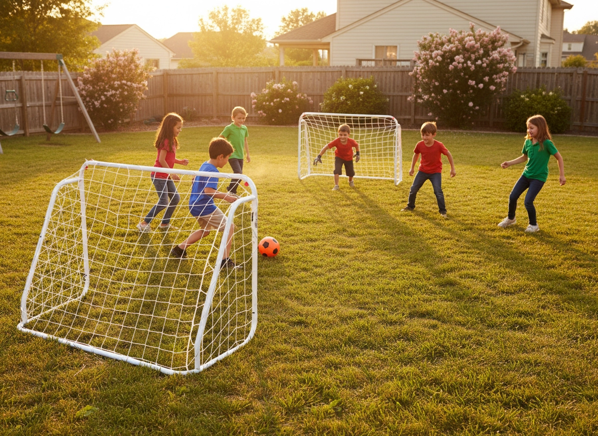 Montajul este intuitiv și rapid – în câteva minute ești gata de joc. Pachetul include patru țăruși de ancorare care fixează fiabil porțile în gazon. Datorită dimensiunilor compacte, porțile se transportă și se depozitează ușor.