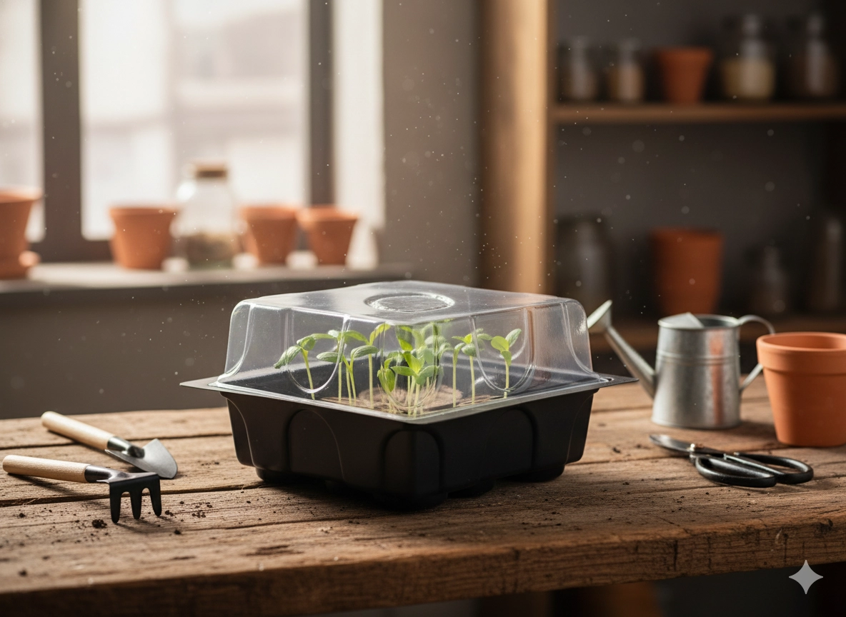 Mini-răsadnița funcționează ca o mică seră pentru fereastră, balcon sau pervaz. Menține căldura și umiditatea stabile, crescând rata de succes a germinării și ușurând transplantarea fără a deteriora rădăcinile.