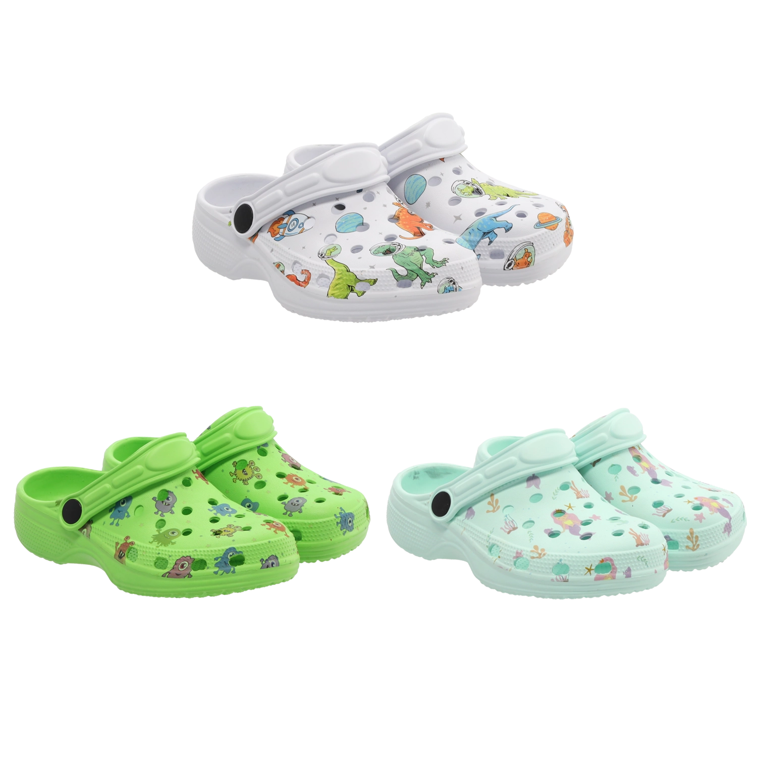 Crocs pentru copii, ușoare, din spumă EVA rezistentă, oferă confort excelent pentru fiecare zi. Orificiile de ventilație plasate strategic mențin picioarele uscate, talpa profilată amortizează la fiecare pas, iar cureaua bidirecțională de pe călcâi fixează ferm încălțămintea pe picior. Sunt rezistente la apă, se curăță ușor și sunt ideale pentru grădină, la apă sau pentru purtare zilnică.
