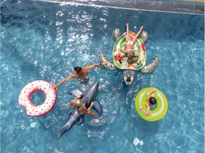 Partea superioară lată oferă confort la relaxare și suficient spațiu pentru distracție în apă.