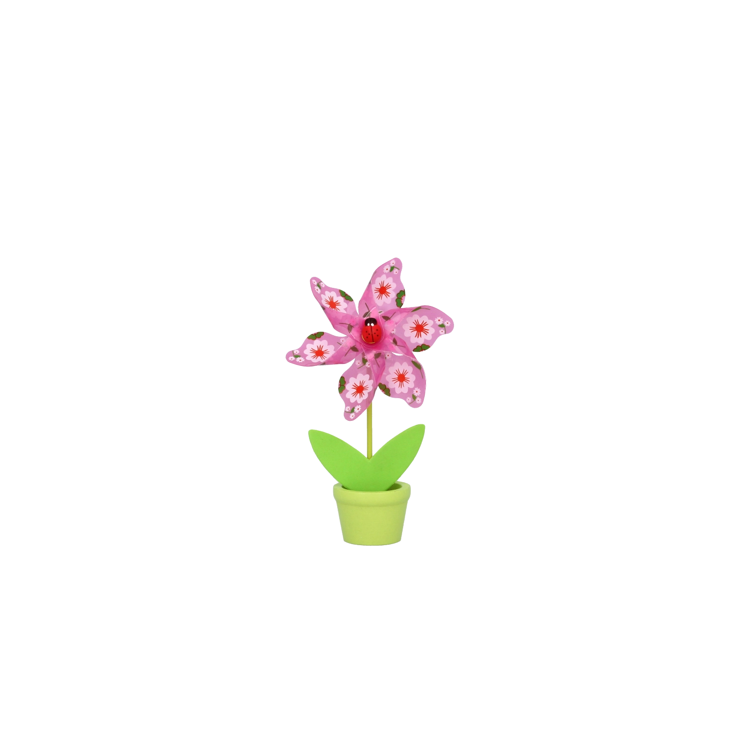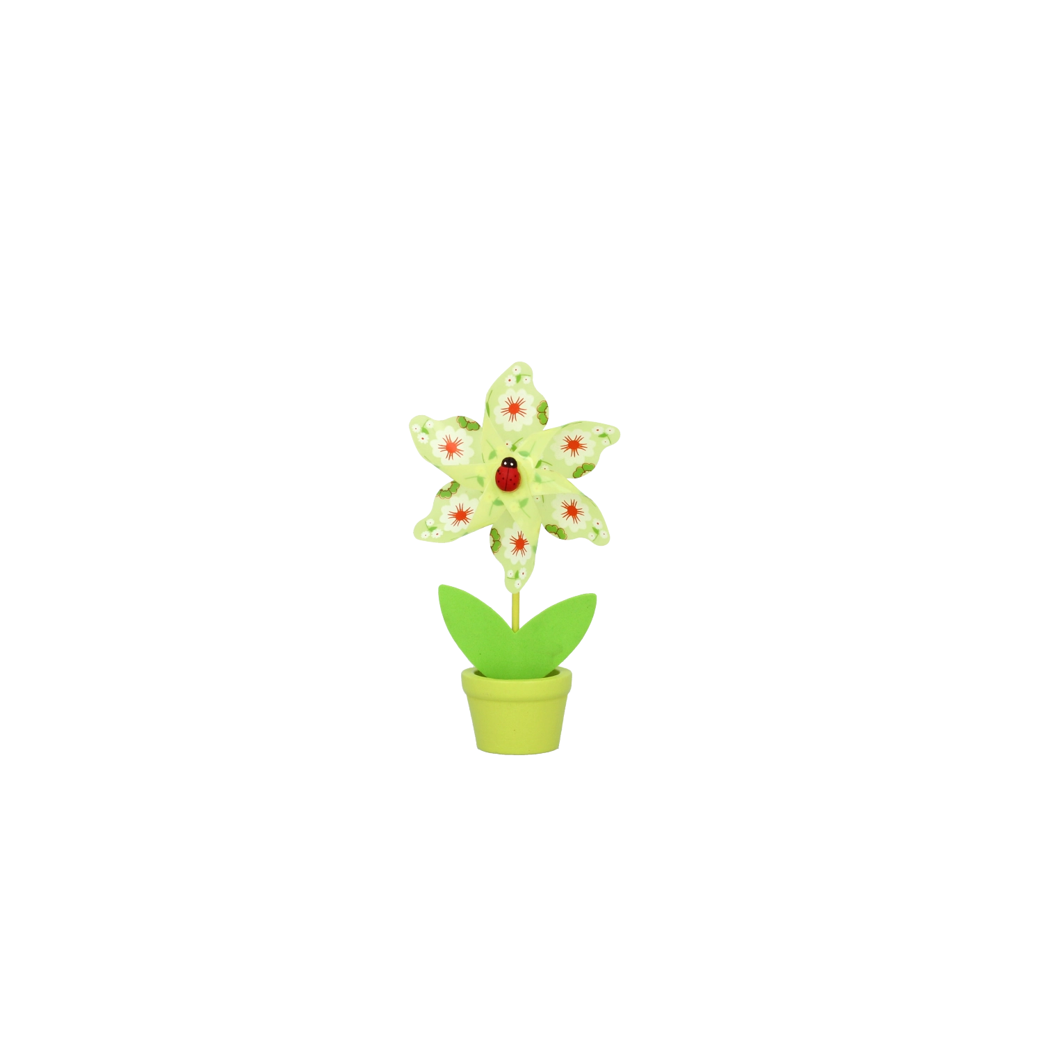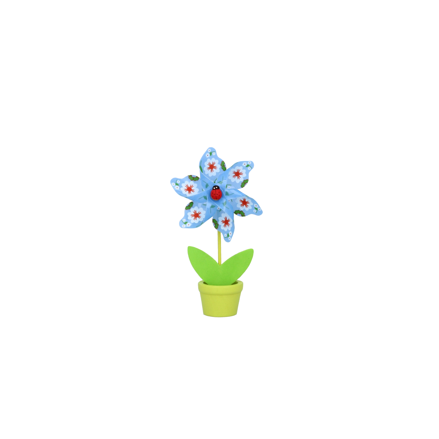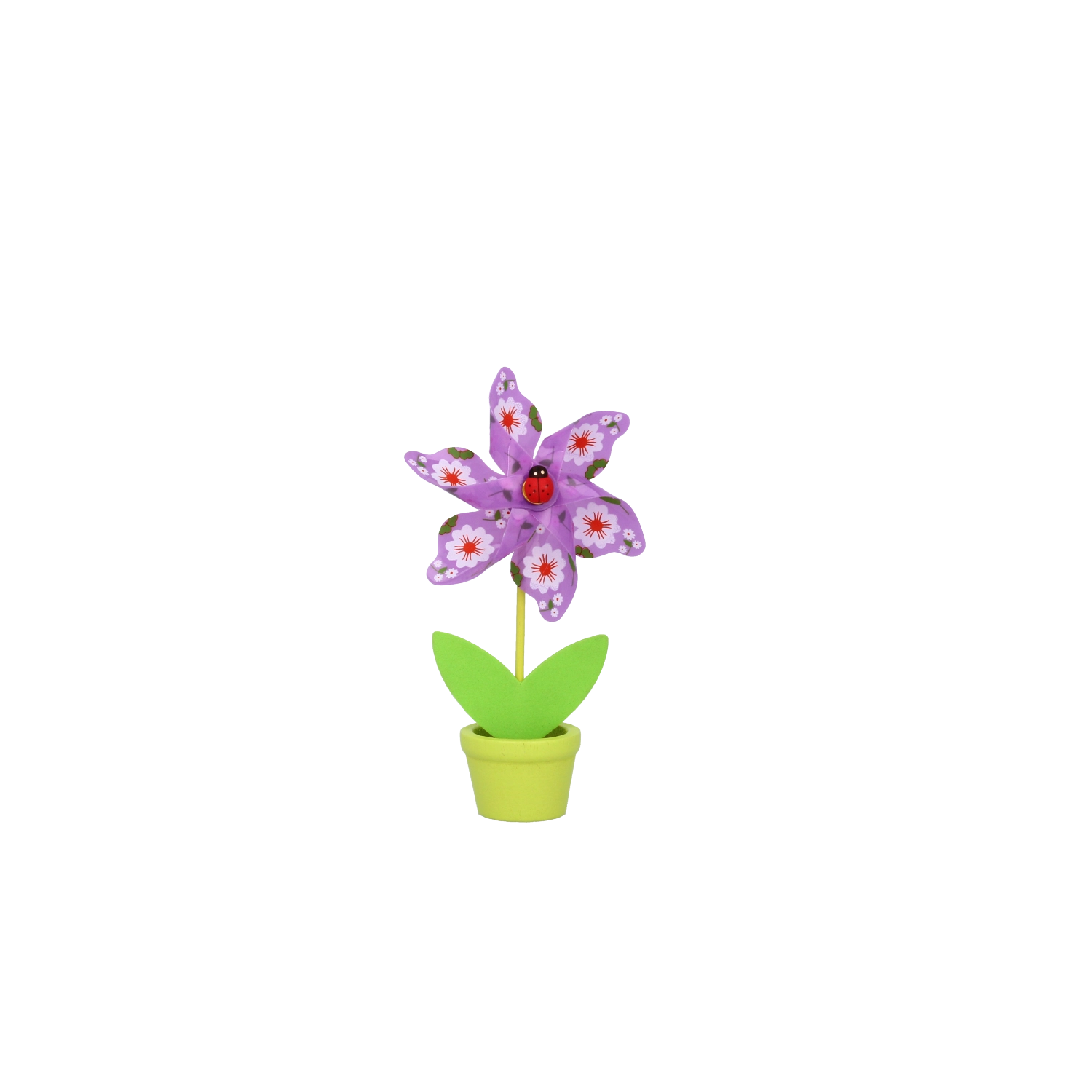 Înviorați interiorul sau colțișorul pentru copii cu morișca colorată cu buburuză într-un mini ghiveci. Ușoară și stabilă, se învârte chiar și la o adiere fină și aduce spațiului veselie și culoare. Datorită dimensiunilor compacte, este perfectă pentru birou, raft sau pervaz.
