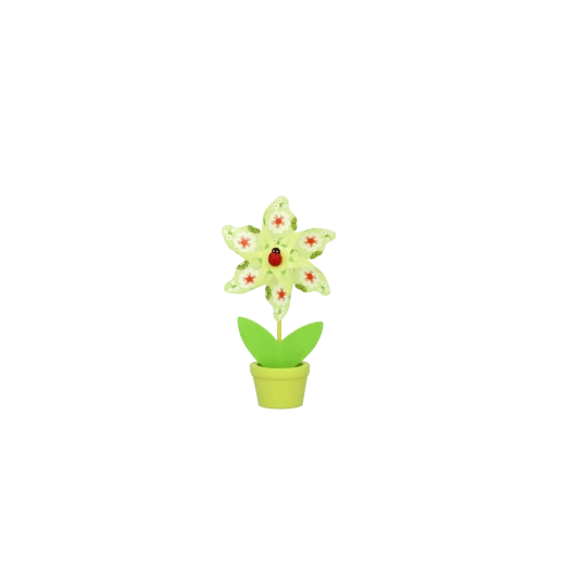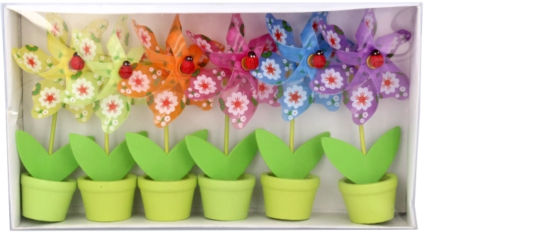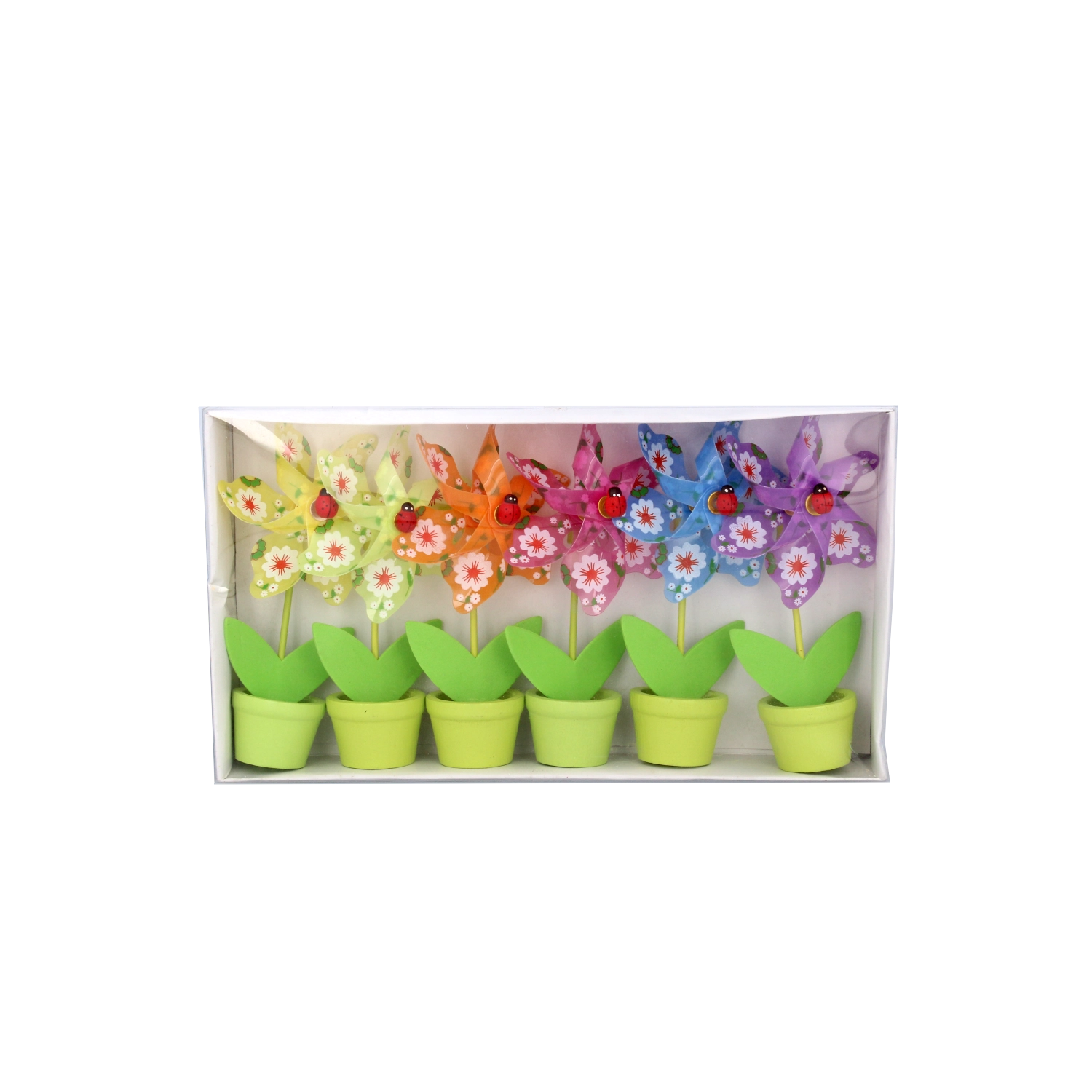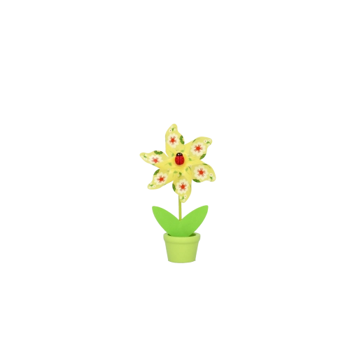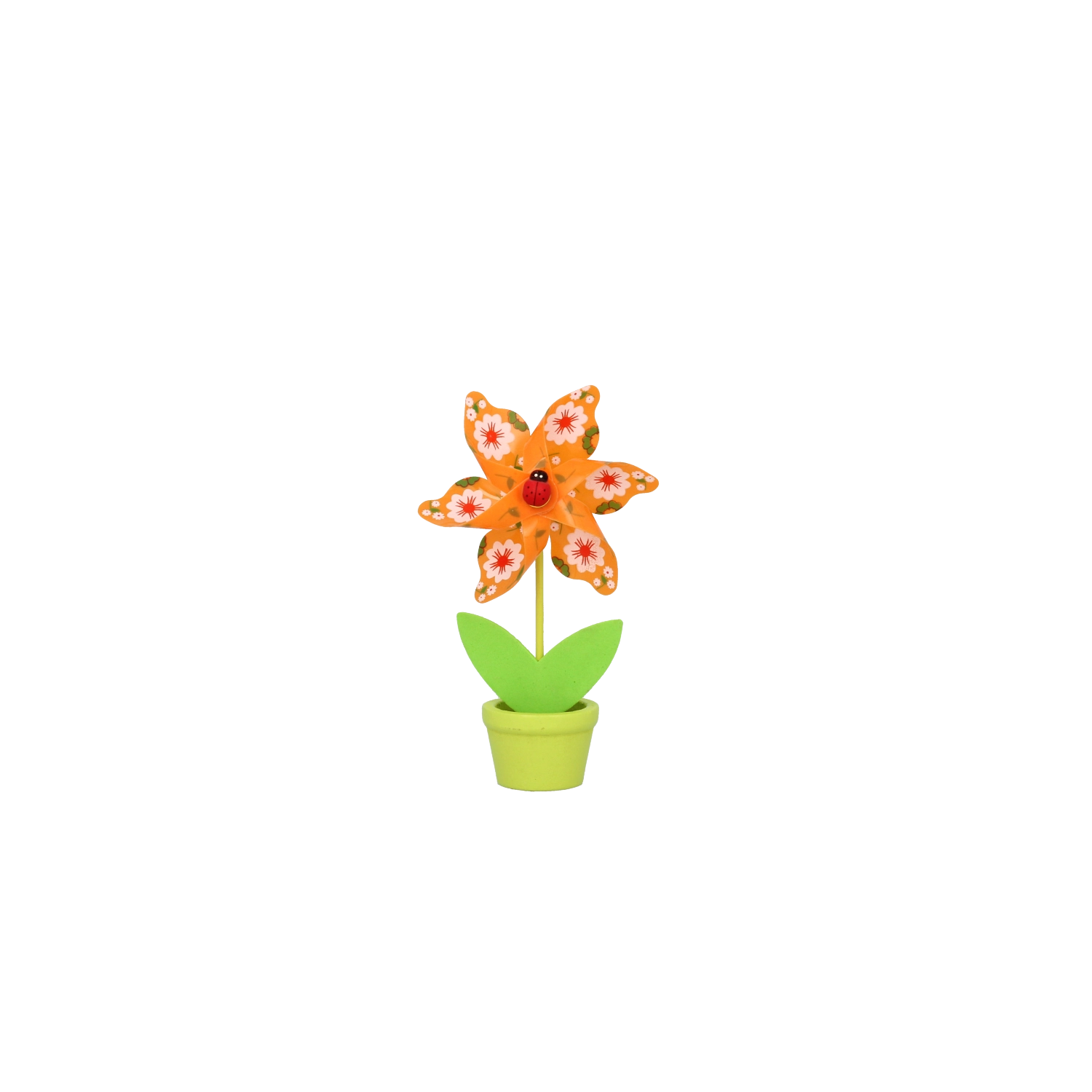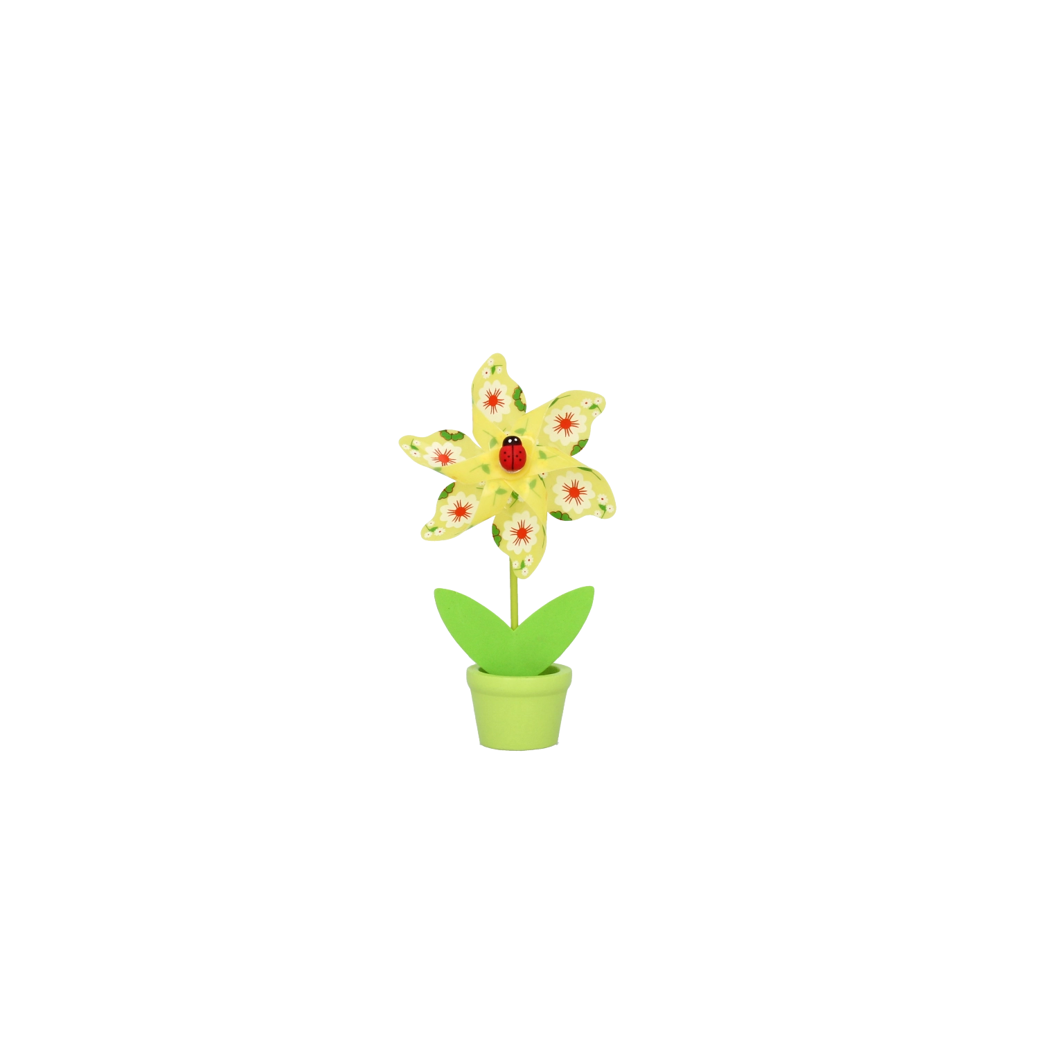 Înviorați interiorul sau colțișorul pentru copii cu morișca colorată cu buburuză într-un mini ghiveci. Ușoară și stabilă, se învârte chiar și la o adiere fină și aduce spațiului veselie și culoare. Datorită dimensiunilor compacte, este perfectă pentru birou, raft sau pervaz.