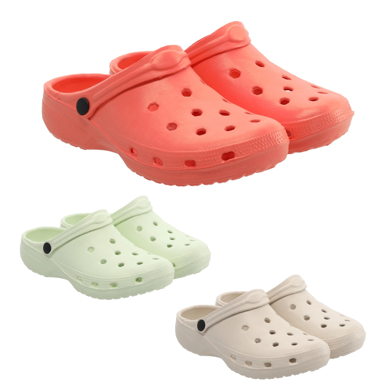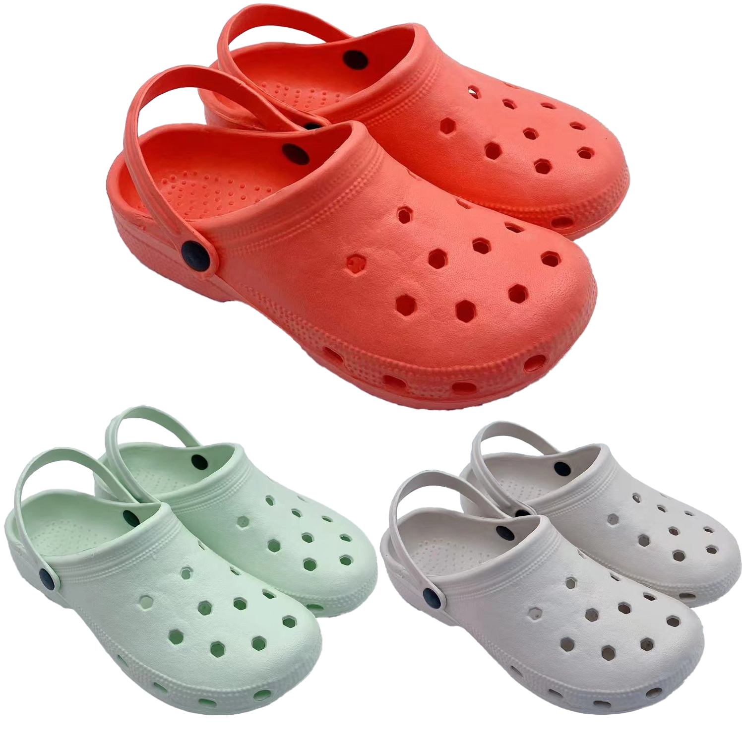 Papuci de grădină ușori și confortabili, realizați din material EVA, ideali pentru lucru în grădină și timp liber. Oferă uscare rapidă, curățare ușoară și ventilație excelentă datorită orificiilor din partea superioară. Cureaua reglabilă la călcâi menține piciorul ferm pe poziție, iar talpa antiderapantă asigură stabilitate chiar și pe suprafețe umede. Disponibili în mărimile 36–41 și în culorile albastru deschis, fucsia, verde.