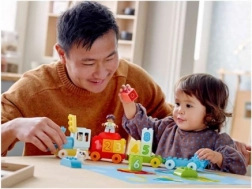 Faceți-i cunoștință pe cei mici cu primele numere datorită trenului viu colorat, pe care copiii pot construi, desprinde, sorta și aranja cărămizile cu numerele 0–9. Roțile mobile și acoperișul care se deschide încurajează jocul imaginativ, în timp ce figurinele drăguțe invită la povești pline de joc de rol.