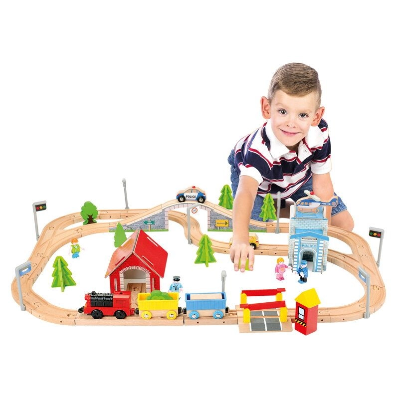 Creează-ți propria cale ferată cu acest set de trenuleț electric de la Bino! Designul său ingenios include intersecții, un pod și numeroase accesorii pentru un peisaj autentic. Copiii se vor bucura să urmărească locomotiva electrică în acțiune, oferind ore nesfârșite de distracție.