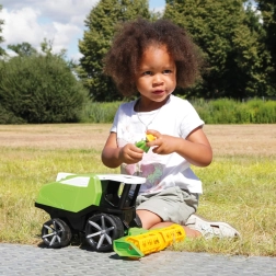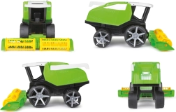 Jucăria este realizată din plastic de calitate, sigur pentru sănătate, care face față jocului atât în casă, cât și afară. Piesele mobile imită munca unui combineu real, astfel încât copiii își pot antrena motricitatea fină și creativitatea.