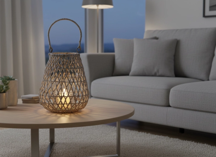 Adu căldura plăcută a luminii în locuința ta. Acest lampion gri împletit îmbină aspectul modern cu practicitatea – mânerul rezistent ușurează transportul și agățarea, iar paharul de sticlă protejează flacăra de vânt și de ceară.