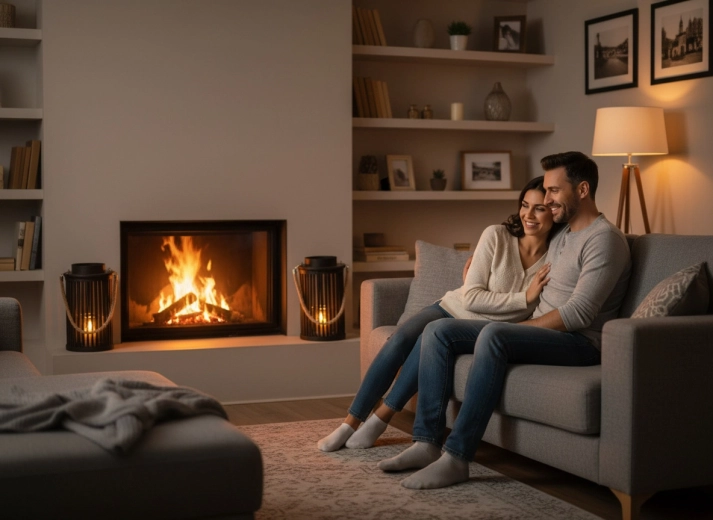 Lamelele din lemn negru creează un aspect modern, care evidențiază flacăra și se potrivește oricărui stil de interior sau exterior.