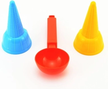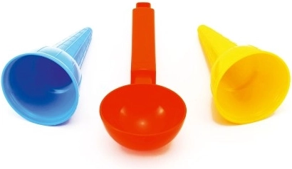 Acest set colorat de înghețată transformă orice nisipar într-o mică cofetărie. Copiii pot lua nisip sau apă, pot crea „cupe de înghețată” și le pot servi în cornete. Construcția ușoară și rezistentă asigură utilizare confortabilă și durată lungă de viață.