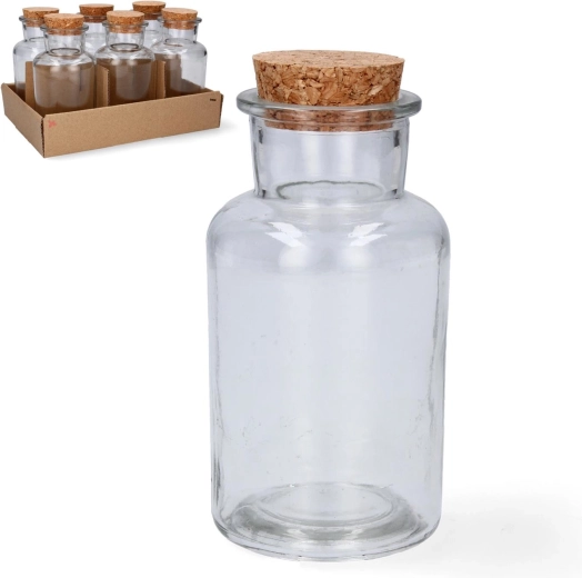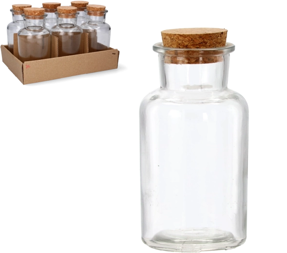 Sticlă de sticlă elegantă cu volum de 250 ml, cu dop din plută naturală pentru închidere sigură. Datorită sticlei groase este rezistentă, ideală pentru sucuri, oțet, ulei și lichioruri de casă și oferă băuturilor un caracter elegant.