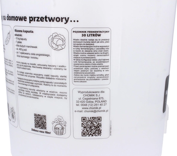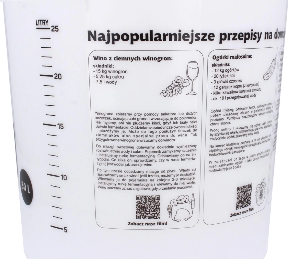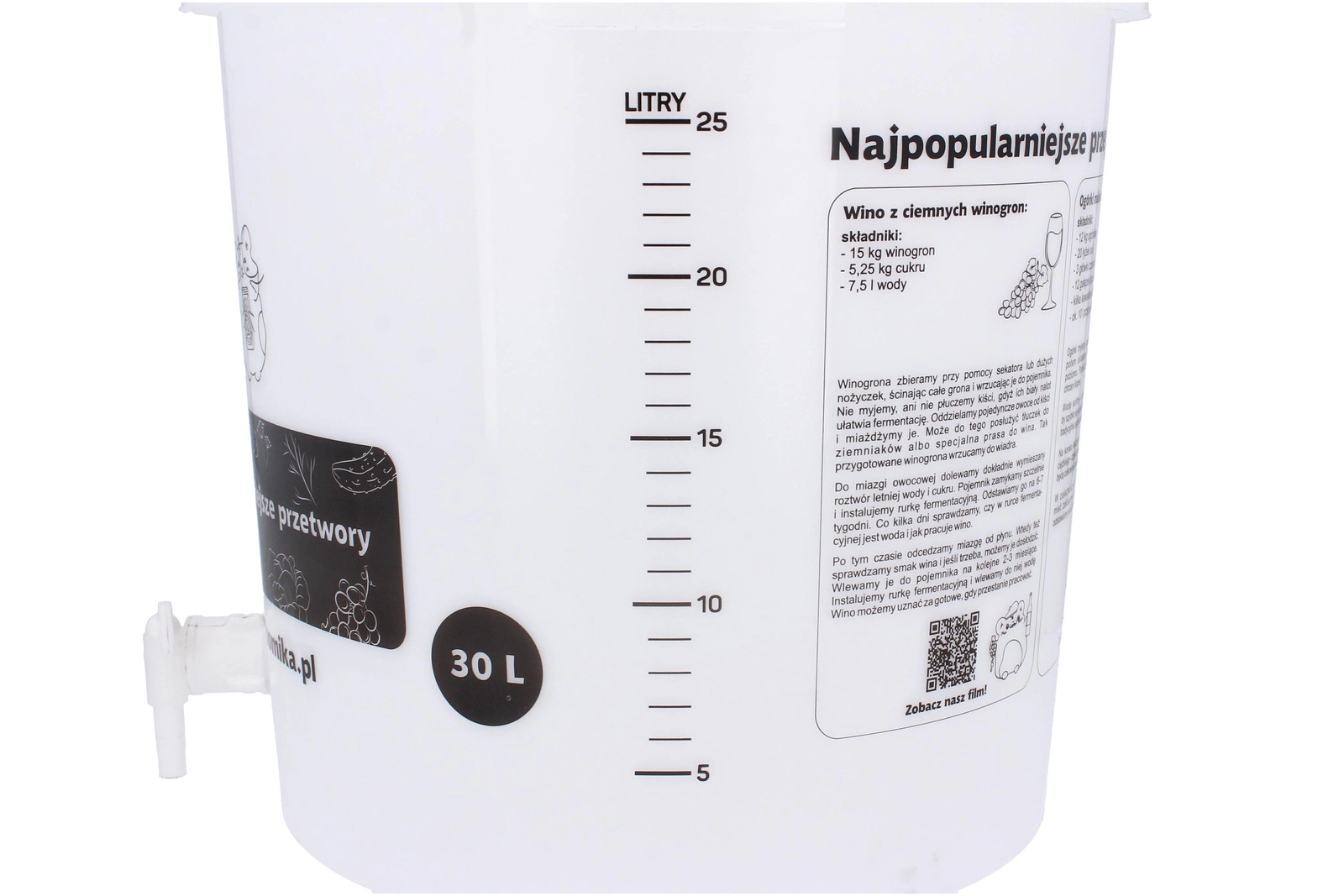 Găleata practică de fermentare cu capac oferă o capacitate utilă de 30 l, perfectă pentru fermentarea acasă a berii, vinului sau musturilor. Datorită greutății reduse și dimensiunilor atent alese, se transportă și se depozitează ușor, în timp ce capacul ajută la protejarea conținutului de impurități.
