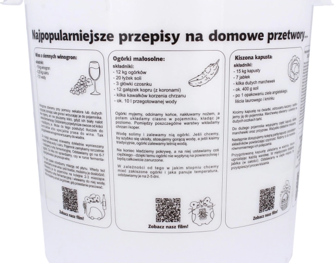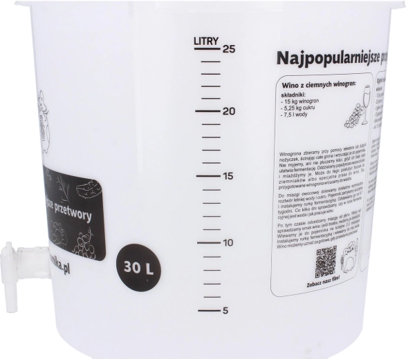 Construcția din plastic durabil este potrivită pentru contactul cu băuturi fermentate și facilitează curățarea și întreținerea. Găleata este o bază excelentă pentru orice set de fermentare de acasă – vă permite să vă concentrați pe rezultat, nu pe probleme tehnice.