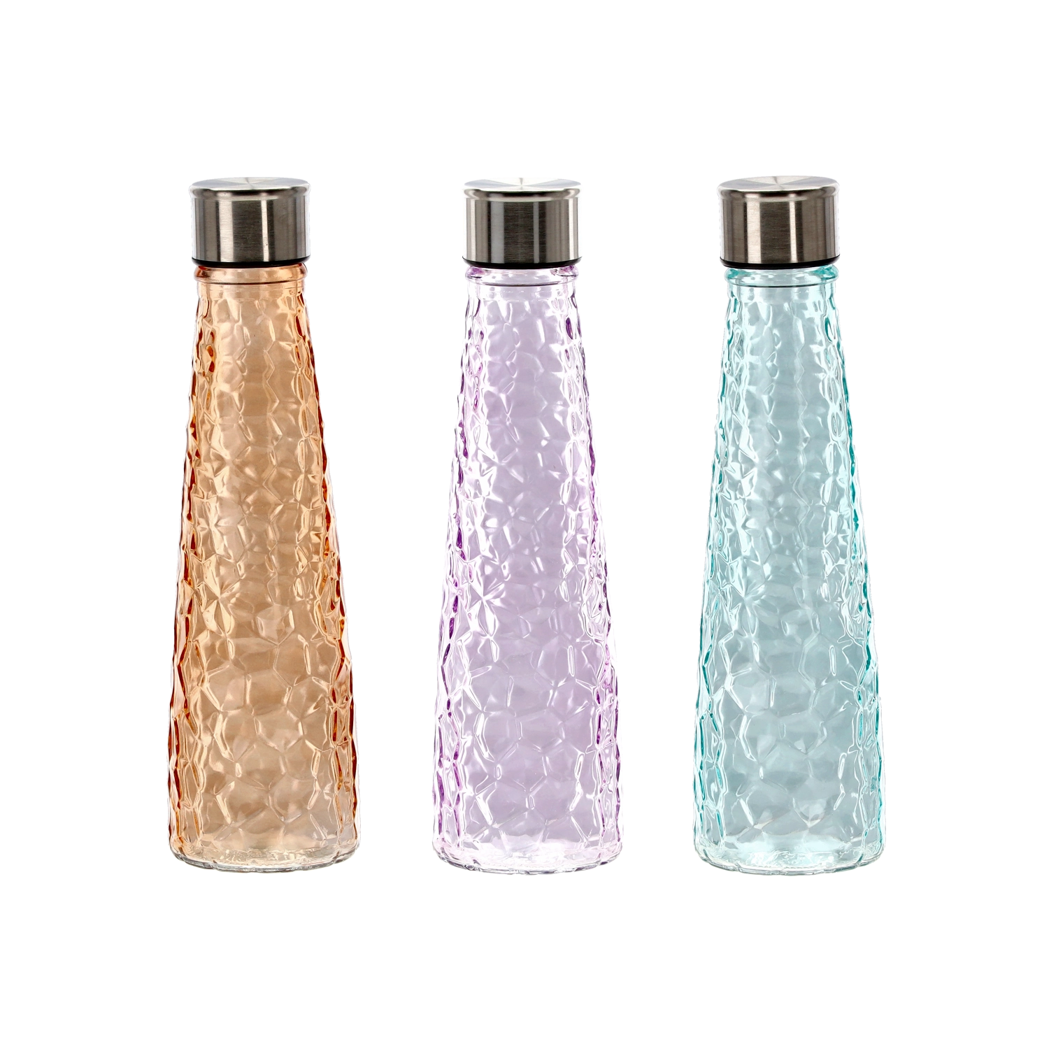 Sticlă ușoară și stilată din sticlă, cu volum de 0,5 l, prevăzută cu capac filetat din oțel inoxidabil pentru etanșeitate fiabilă. Sticlă rezistentă cu suprafață texturată pentru o prindere sigură, ideală pentru hidratare zilnică la serviciu, sport și călătorii. Disponibilă într-un mix de culori pentru a se potrivi ușor stilului tău.