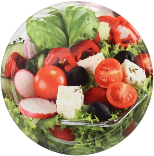 Imprimarea estetică color cu motiv de legume nu doar decorează borcanele, ci facilitează și organizarea și identificarea conținutului în cămară. Capacele sunt concepute pentru utilizare repetată după spălare temeinică și îndeplinesc cerințele pentru contactul cu alimentele.