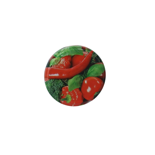 Motivul cu legume în imprimare policromă oferă borcanelor un aspect atractiv – perfect pentru ambalarea cadou a gemurilor de casă, a murăturilor sau a legumelor marinate. Capacele sunt potrivite pentru reutilizare – după utilizare, este suficient să le spălați și le puteți folosi din nou.