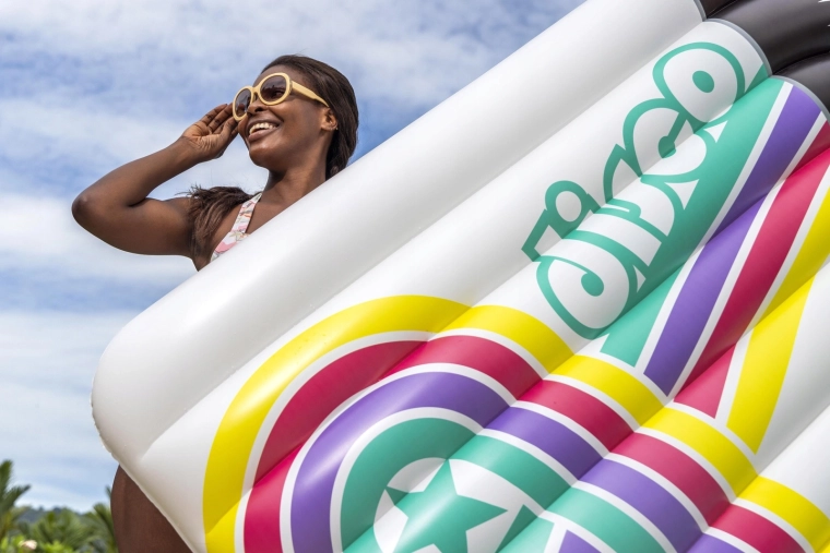 Bestway LP Lounger aduce designul retro iconic „disco” combinat cu durabilitate modernă. Datorită camerelor de aer multiple și suprafeței cu nervuri, oferă o poziție confortabilă și o stabilitate excelentă la plutire pentru o persoană adultă. Tehnologia de protecție Color Shield ajută la menținerea culorilor intense și, în același timp, împiedică transferul de culoare pe pielea umedă.