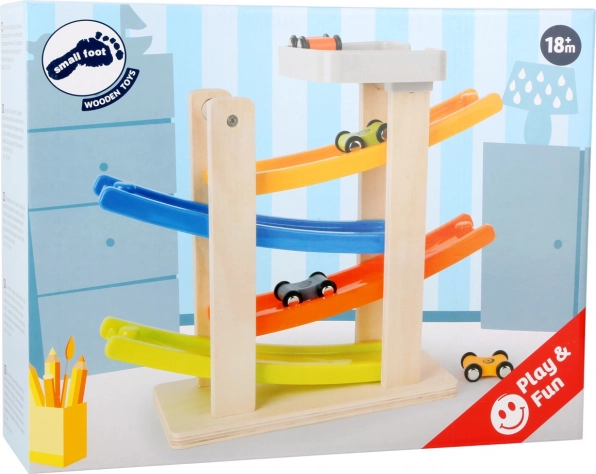 Rampa multicoloră face jocul atrăgător vizual și sprijină învățarea culorilor.