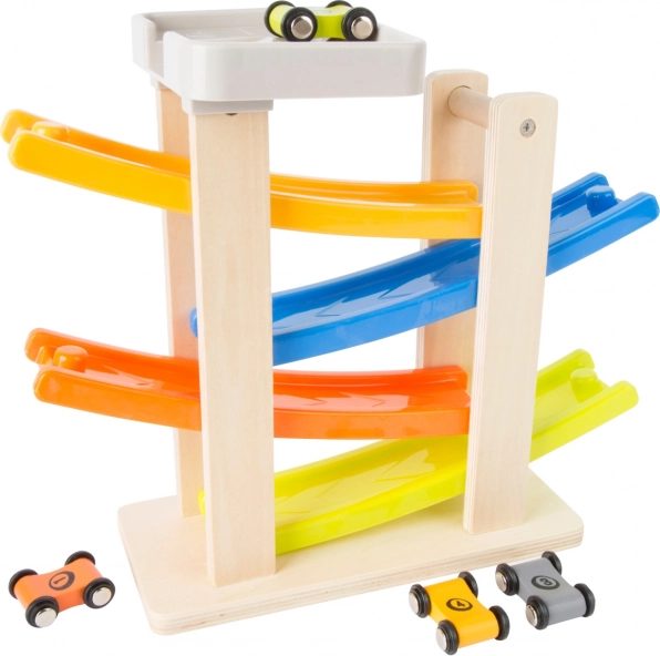Această pistă clip-clap fascinantă este realizată dintr-o combinație de lemn și plastic, asigurând o durată de viață îndelungată și o utilizare fără probleme. Cu cele patru rampe colorate, copiii pot urmări cum mașinuțele coboară cu sărituri și întoarceri uimitoare. Este ideală pentru copiii de la 18 luni, care adoră să se joace și, în același timp, își dezvoltă abilitățile motorii.