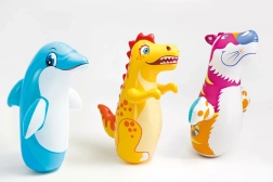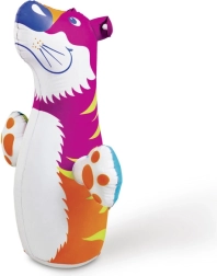 Animal boxant gonflabil amuzant pentru copii de la 3 ani aduce multă mișcare și râsete acasă și în aer liber. Datorită părții inferioare stabile cu nisip, revine mereu la poziția inițială după împingere, fiind ideal pentru eliberarea energiei în siguranță. Fabricat din vinil rezistent, testat în prealabil și echipat cu valvă de siguranță. Disponibil în 3 modele drăguțe de animale. Dimensiune aprox. 97 × 61 cm.