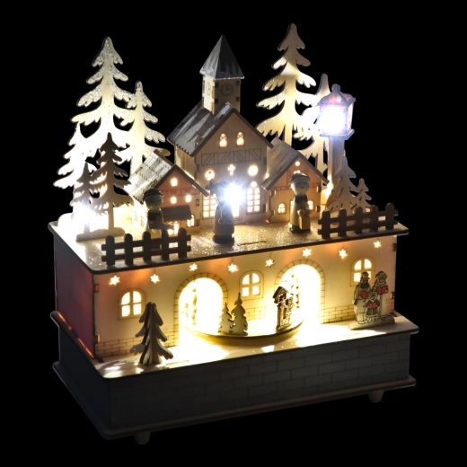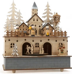 Cutia muzicală din lemn de la marca Small Foot te va duce într-un sat de iarnă fermecător, unde te vor încânta personajele dansatoare sub o peisaj înzăpezit și iluminat. Melodia cunoscută de Crăciun va aduce liniște și bucurie în casele voastre. Această cutie este un accesoriu ideal pentru decorul de Crăciun și, datorită iluminării LED, oferă magie chiar și seara.