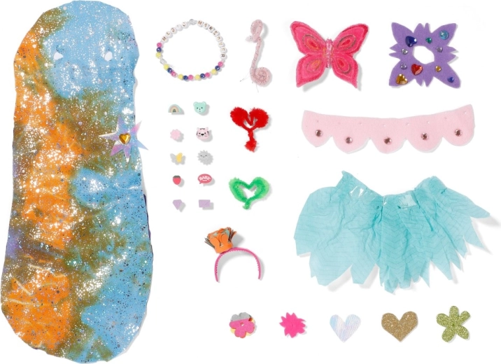 Setul include accesorii textile, decorațiuni cu clips și un animăluț drăgălaș cu coadă detașabilă. Broșura inclusă oferă idei DIY despre cum să personalizezi păpușa și accesoriile și cu materiale pe care copiii le au acasă. Aura este alegerea ideală pentru copiii de la 4 ani care adoră stilizarea creativă, jocul și distracția plină de sclipici.