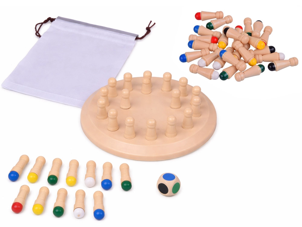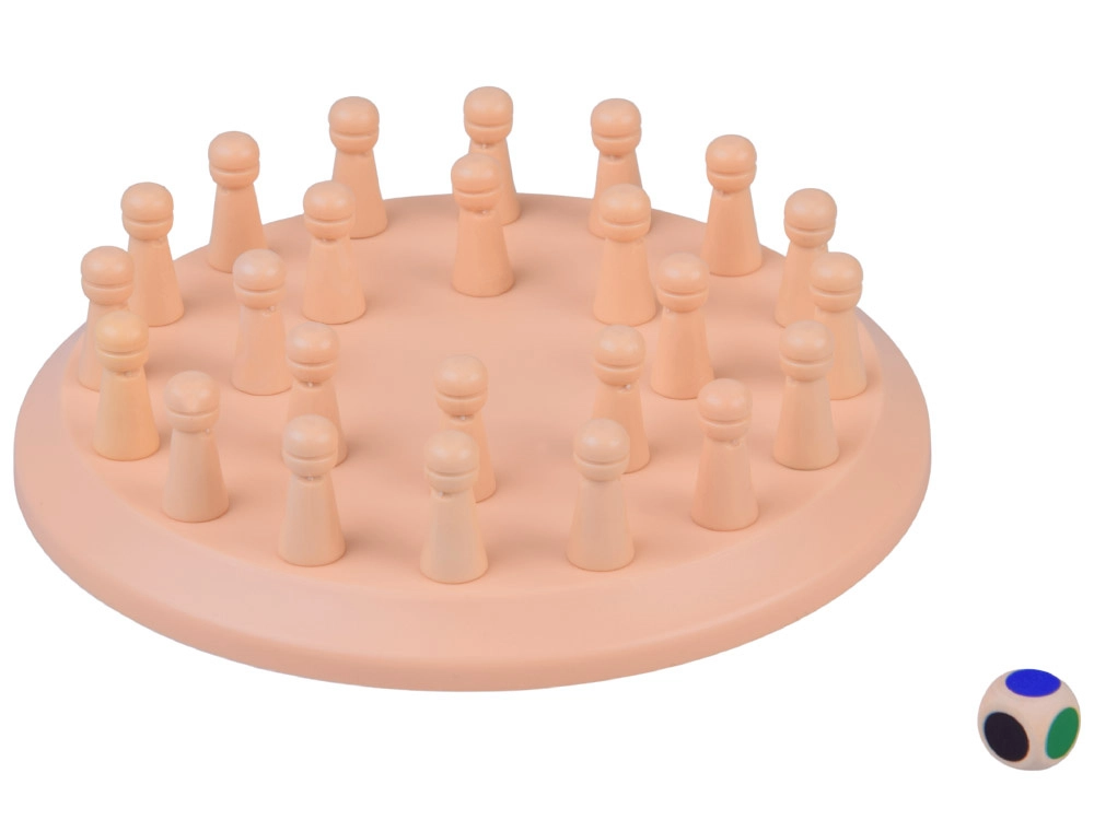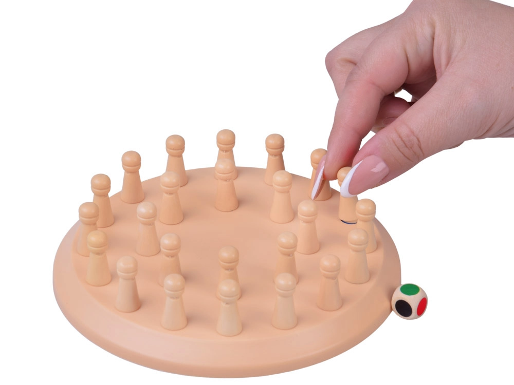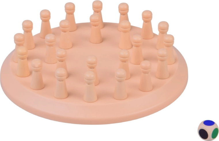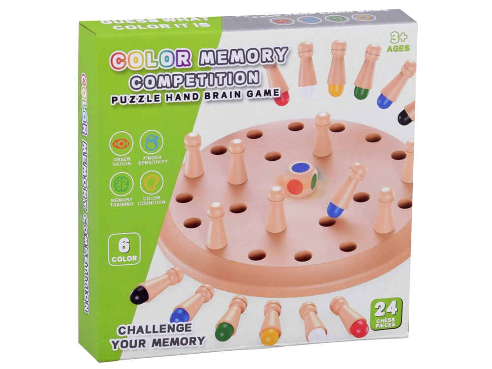 Placa circulară din lemn, cu orificii și știfturi, ascunde culori pe care jucătorii trebuie să le memorizeze. După aruncarea zarului colorat, încearcă să dezvăluie știftul corespunzător culorii indicate. Dacă alegerea este corectă, știftul este câștigat, dacă nu, se pune la loc – urmează următorul jucător. Jocul este excelent pentru dezvoltarea memoriei vizuale, a asocierilor și a motricității fine.