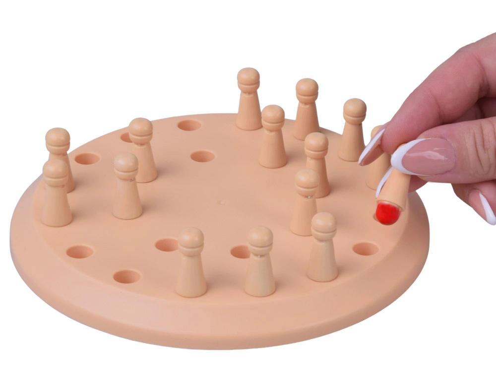 Capetele colorate ale știfturilor ascunse în orificii îi obligă pe jucători să memoreze pozițiile și culorile. Exercițiu ideal al abilităților cognitive sub formă de joc.