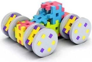Cu axe, roți și conectori speciali, copiii construiesc cu ușurință mașini funcționale, utilaje și alte structuri creative.