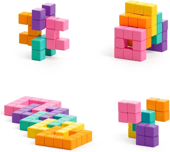 Magneții neodim mențin cuburile sigur împreună, astfel încât copiii pot încerca fără frustrare forme noi, turnuri sau modele plane.