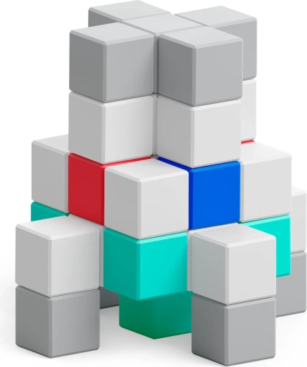 Fiecare cub conține magneți neodim care asigură o conexiune sigură și reconstrucții fluide, fără frustrare – ideal pentru modele 3D ale coloniei spațiale.