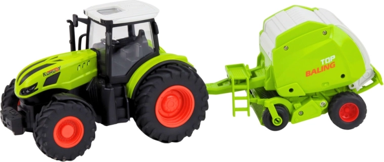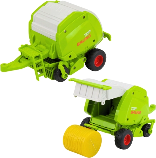 Remorca cu presă adaugă jocului atmosfera autentică a fermei și extinde posibilitățile de joacă creativă cu utilaje agricole.