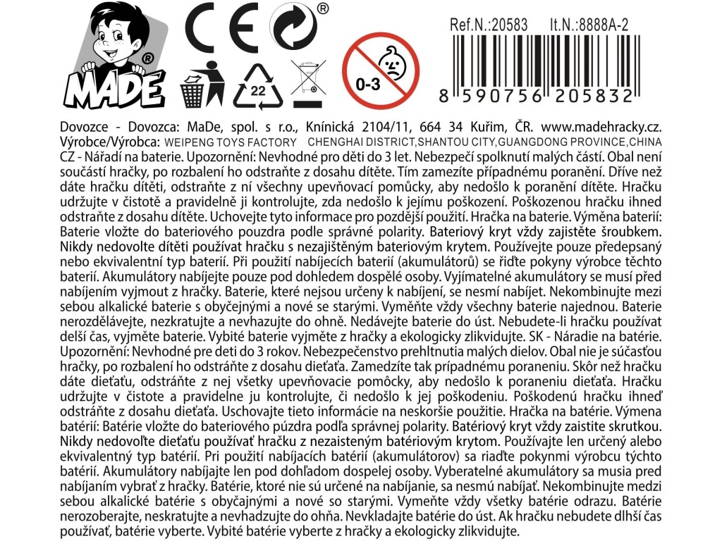Bormașina este fabricată din plastic de calitate, fiind ușoară, rezistentă și sigură pentru joaca celor mici. Ambalajul tip display box este potrivit și ca dar.